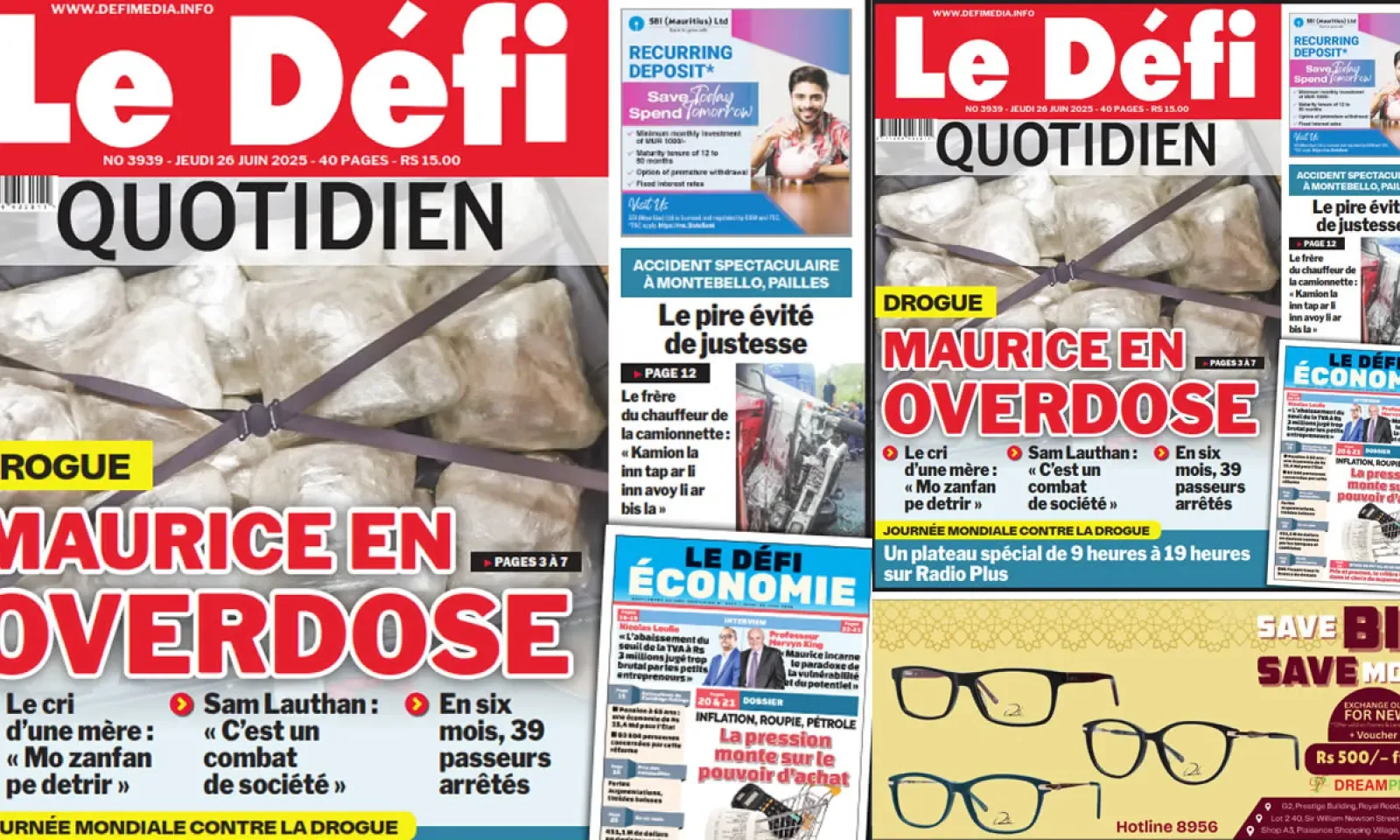 ? Voici la Une du Défi Quotidien. Le journal est en vente à Rs 15 l'exemplaire aux endroits habituels (supermarchés, boutiques, tabagies, superettes). Bonne lecture !