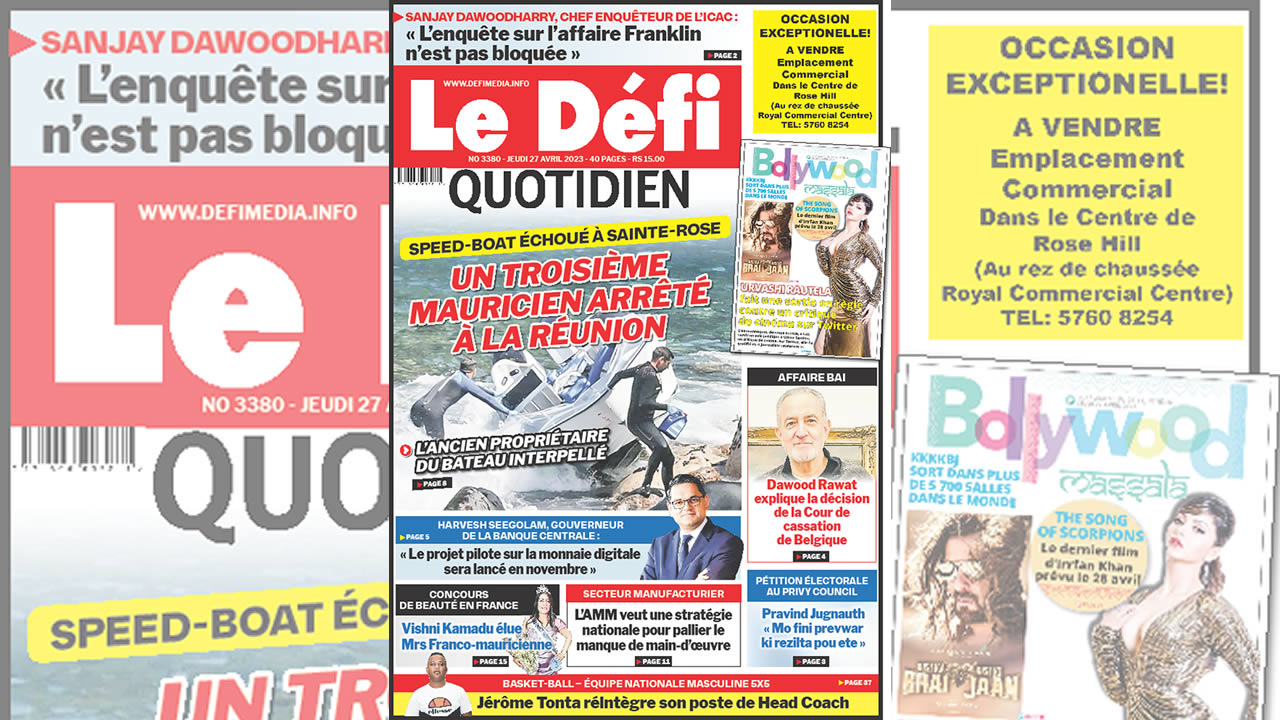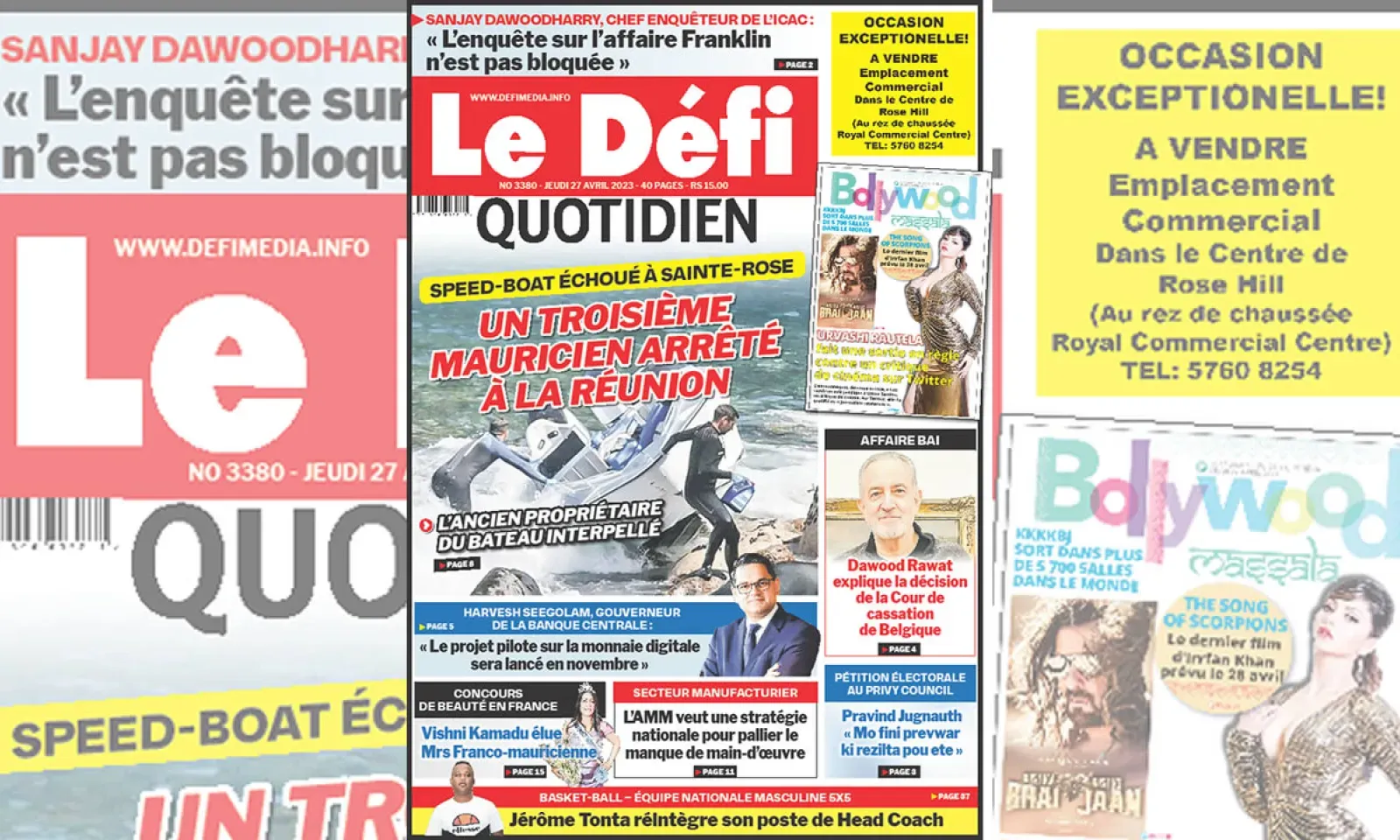 ? Voici la Une du Défi Quotidien. Le journal est en vente à Rs 15 l'exemplaire aux endroits habituels (supermarchés, boutiques, tabagies, superettes). Bonne lecture !