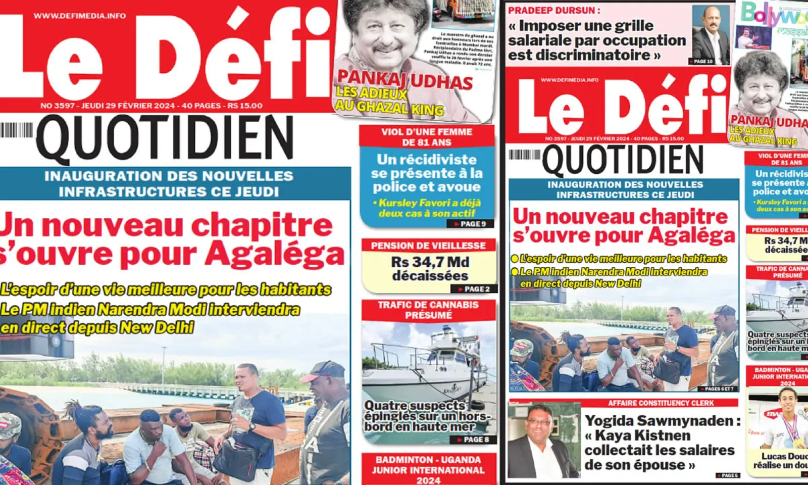? Voici la Une du Défi Quotidien. Le journal est en vente à Rs 15 l'exemplaire aux endroits habituels (supermarchés, boutiques, tabagies, superettes). Bonne lecture !