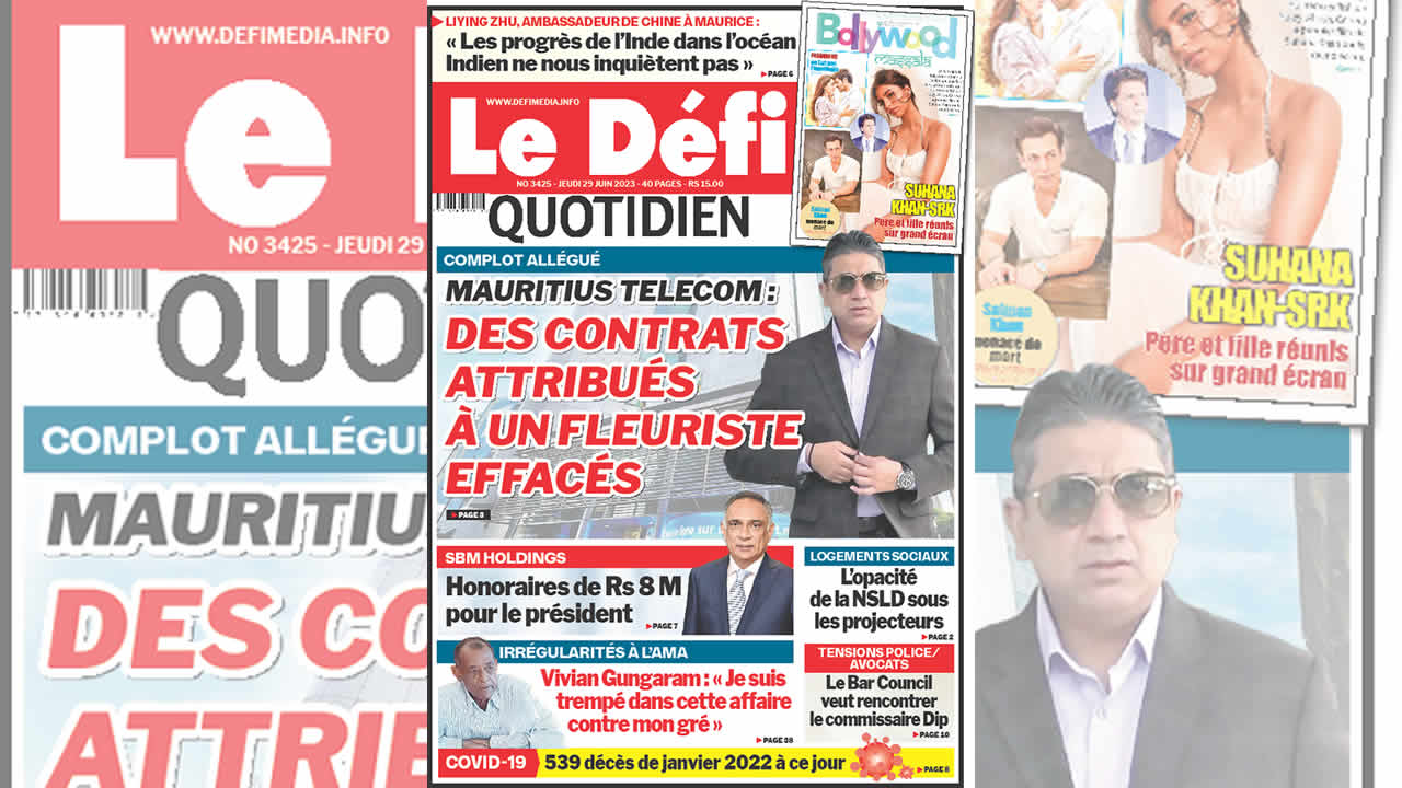 ? Voici la Une du Défi Quotidien. Le journal est en vente à Rs 15 l'exemplaire aux endroits habituels (supermarchés, boutiques, tabagies, superettes). Bonne lecture !