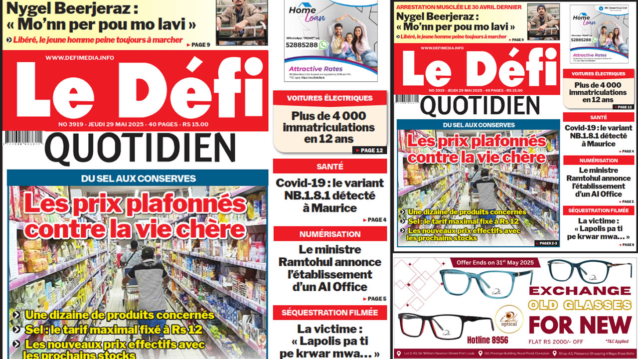 ? Voici la Une du Défi Quotidien. Le journal est en vente à Rs 15 l'exemplaire aux endroits habituels (supermarchés, boutiques, tabagies, superettes). Bonne lecture !