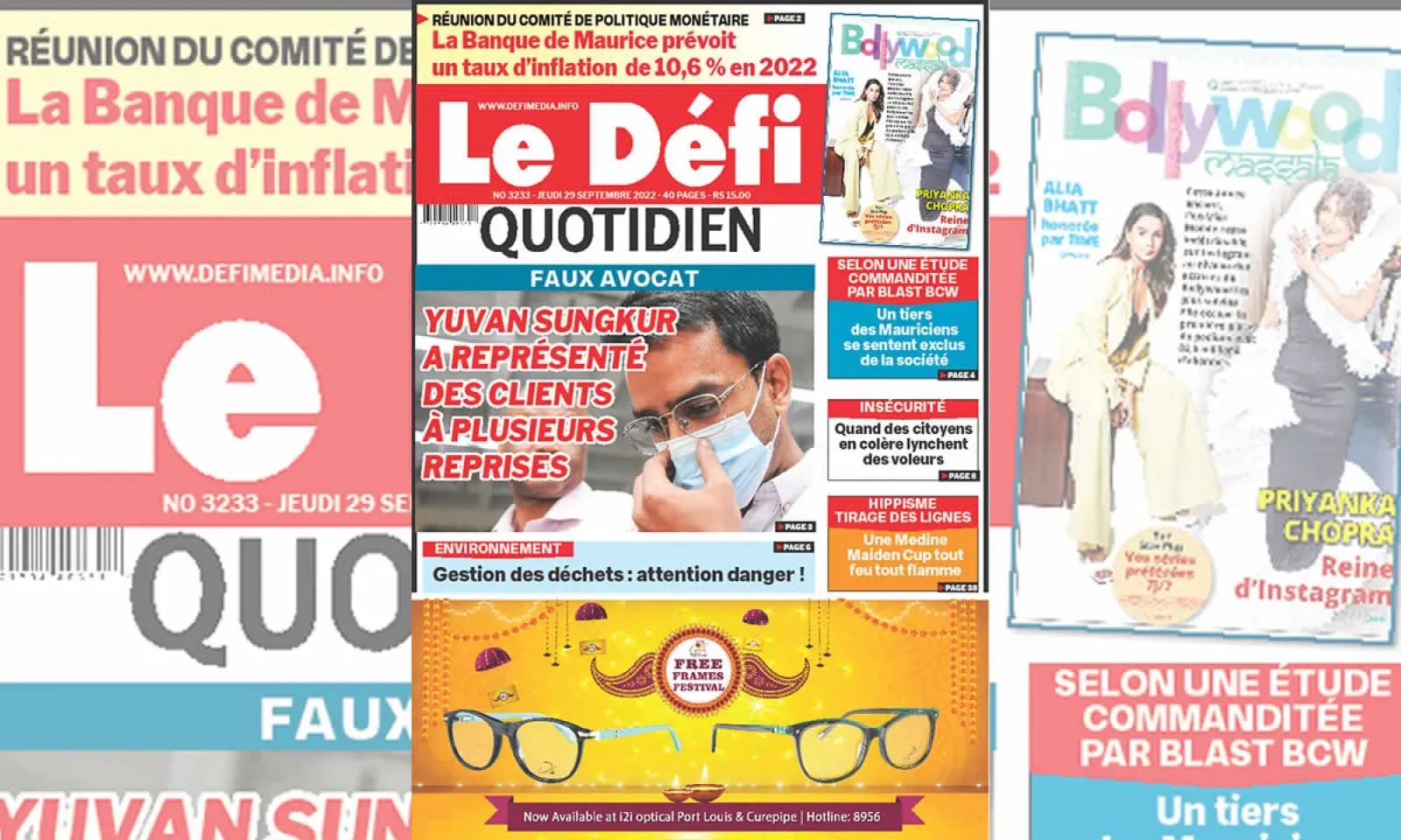 ? Voici la Une du Défi Quotidien. Le journal est en vente à Rs 15 l'exemplaire aux endroits habituels (supermarchés, boutiques, tabagies, superettes). Bonne lecture !