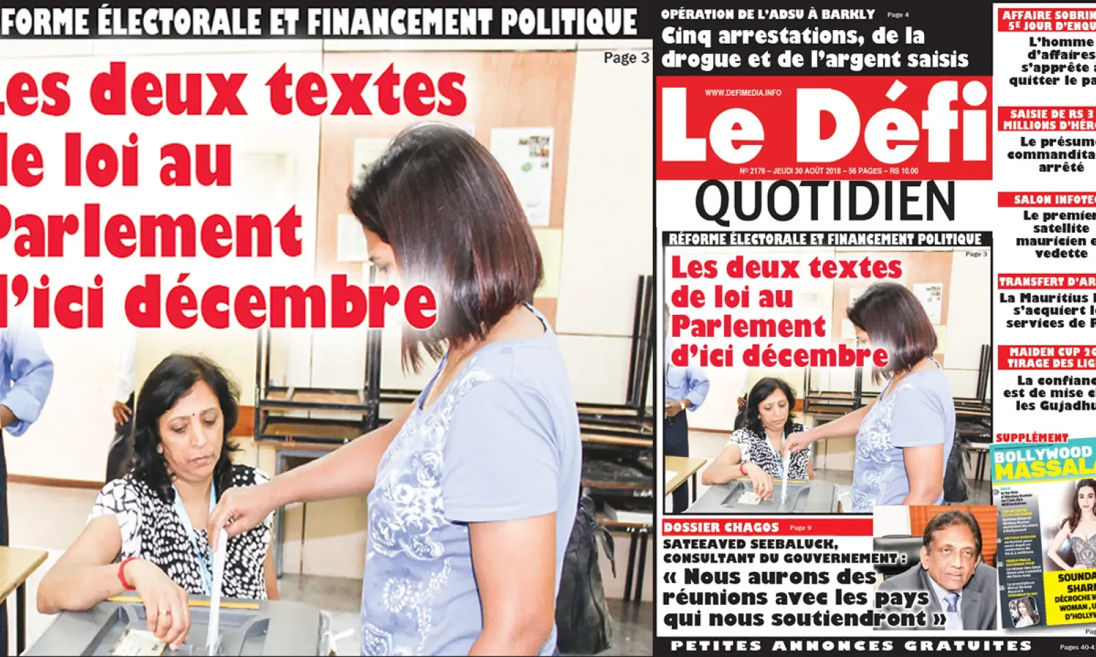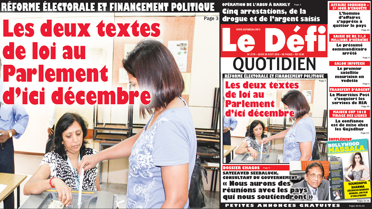 Voici la Une du Defi Quotidien de ce jeudi 30 août 2018