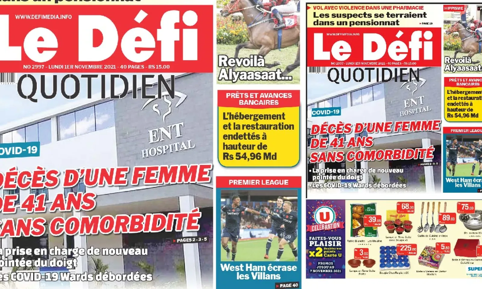 ? Voici la Une du Défi Quotidien. Le journal est en vente à Rs 15 l'exemplaire aux endroits habituels (supermarchés, boutiques, tabagies, superettes). Bonne lecture !