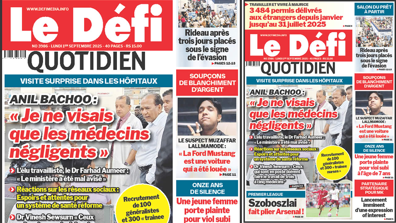 ? Voici la Une du Défi Quotidien. Le journal est en vente à Rs 15 l'exemplaire aux endroits habituels (supermarchés, boutiques, tabagies, superettes). Bonne lecture !