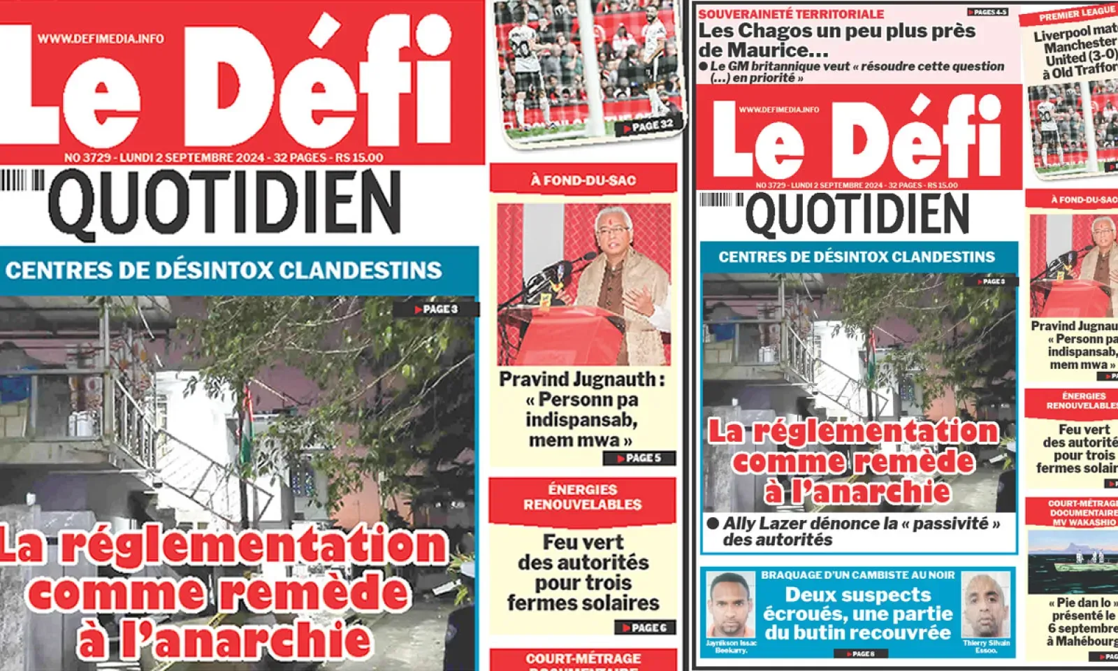? Voici la Une du Défi Quotidien. Le journal est en vente à Rs 15 l'exemplaire aux endroits habituels (supermarchés, boutiques, tabagies, superettes). Bonne lecture !