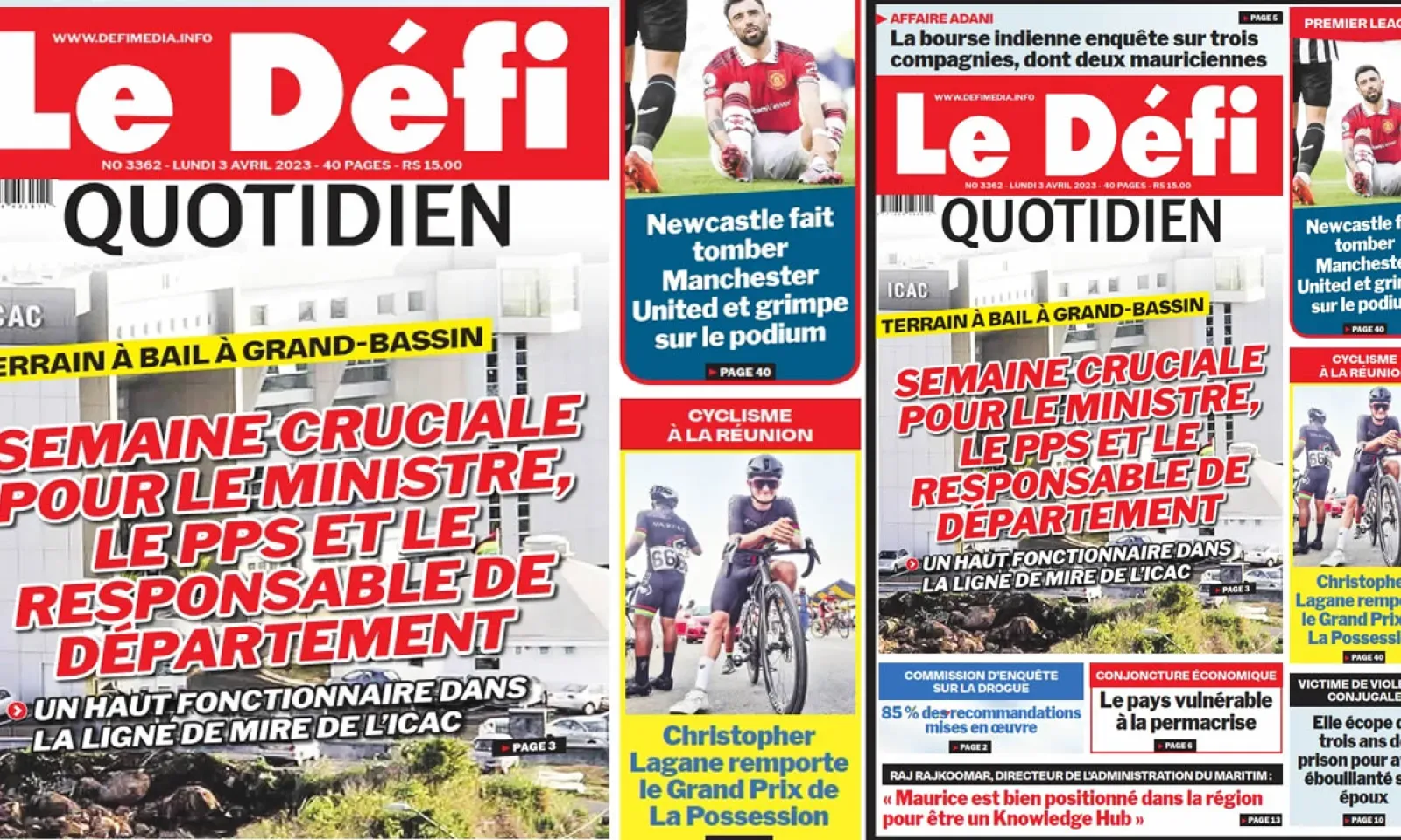 ? Voici la Une du Défi Quotidien. Le journal est en vente à Rs 15 l'exemplaire aux endroits habituels (supermarchés, boutiques, tabagies, superettes). Bonne lecture !