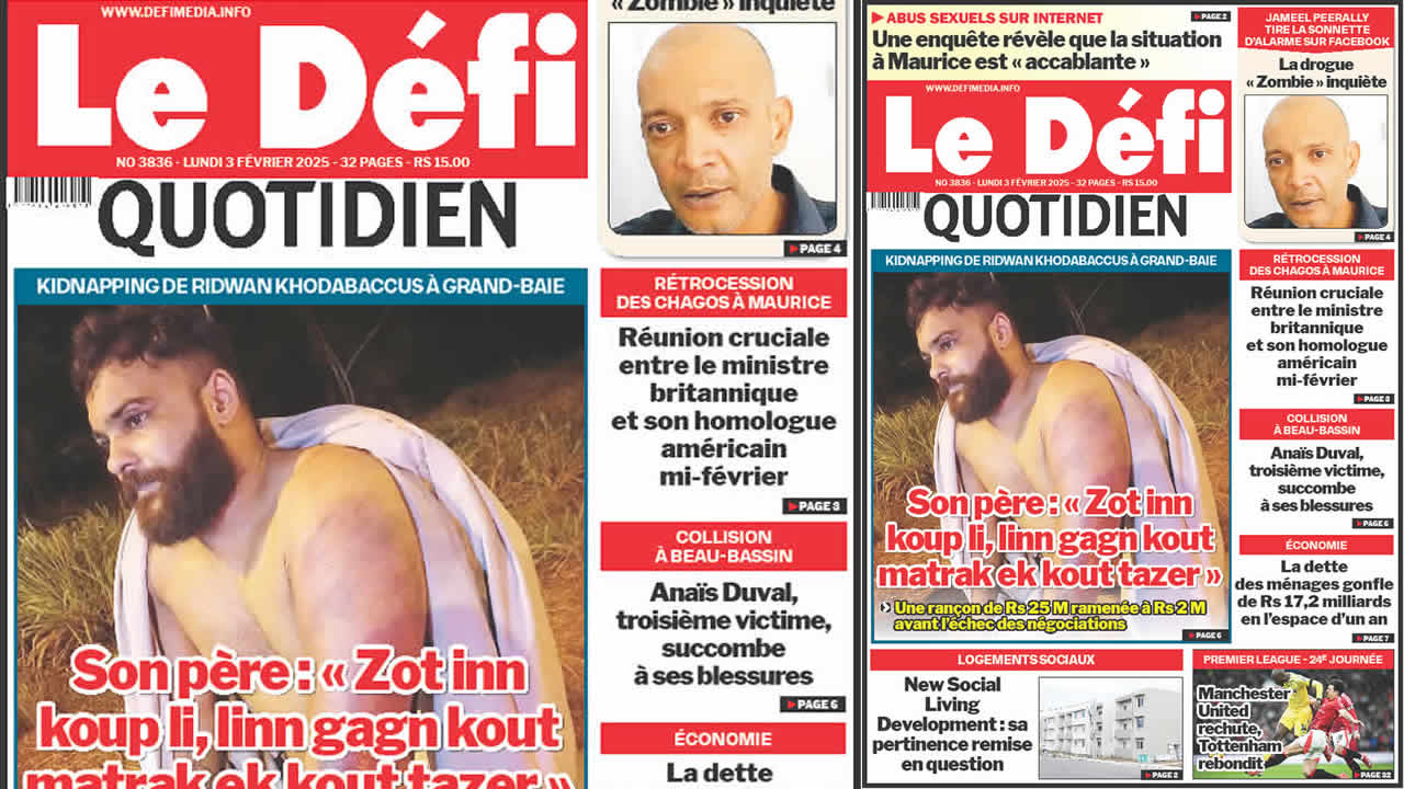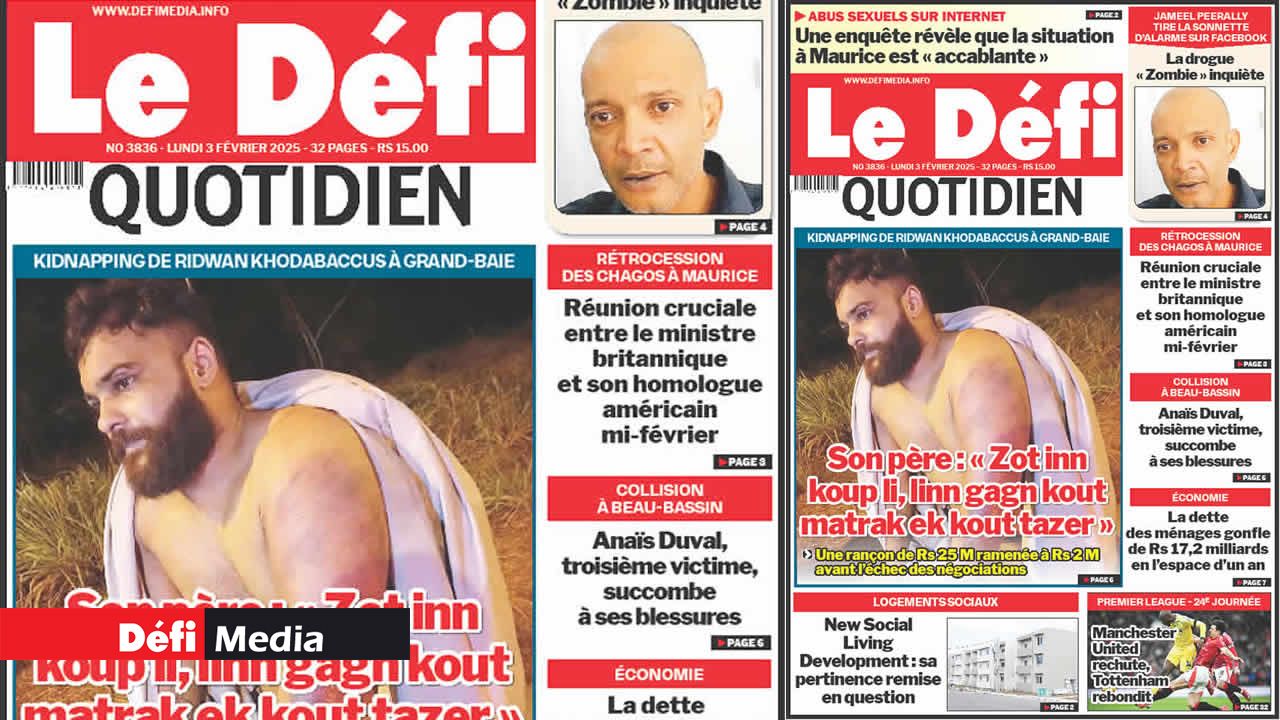 ? Voici la Une du Défi Quotidien. Le journal est en vente à Rs 15 l'exemplaire aux endroits habituels (supermarchés, boutiques, tabagies, superettes). Bonne lecture !