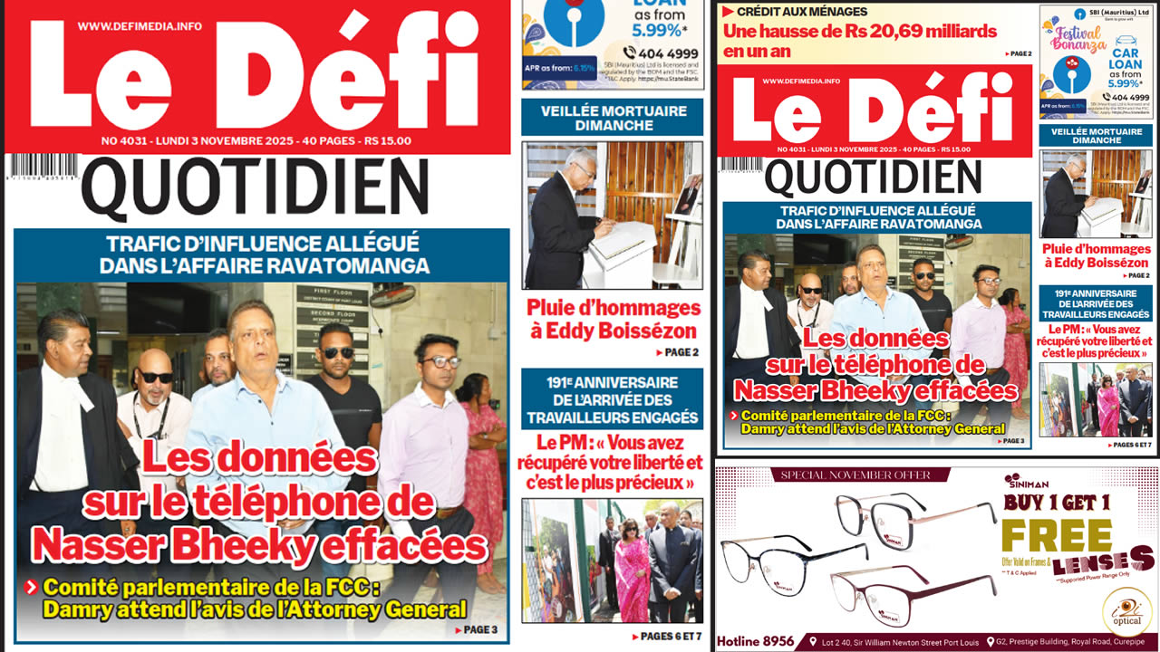 ? Voici la Une du Défi Quotidien. Le journal est en vente à Rs 15 l'exemplaire aux endroits habituels (supermarchés, boutiques, tabagies, superettes). Bonne lecture !