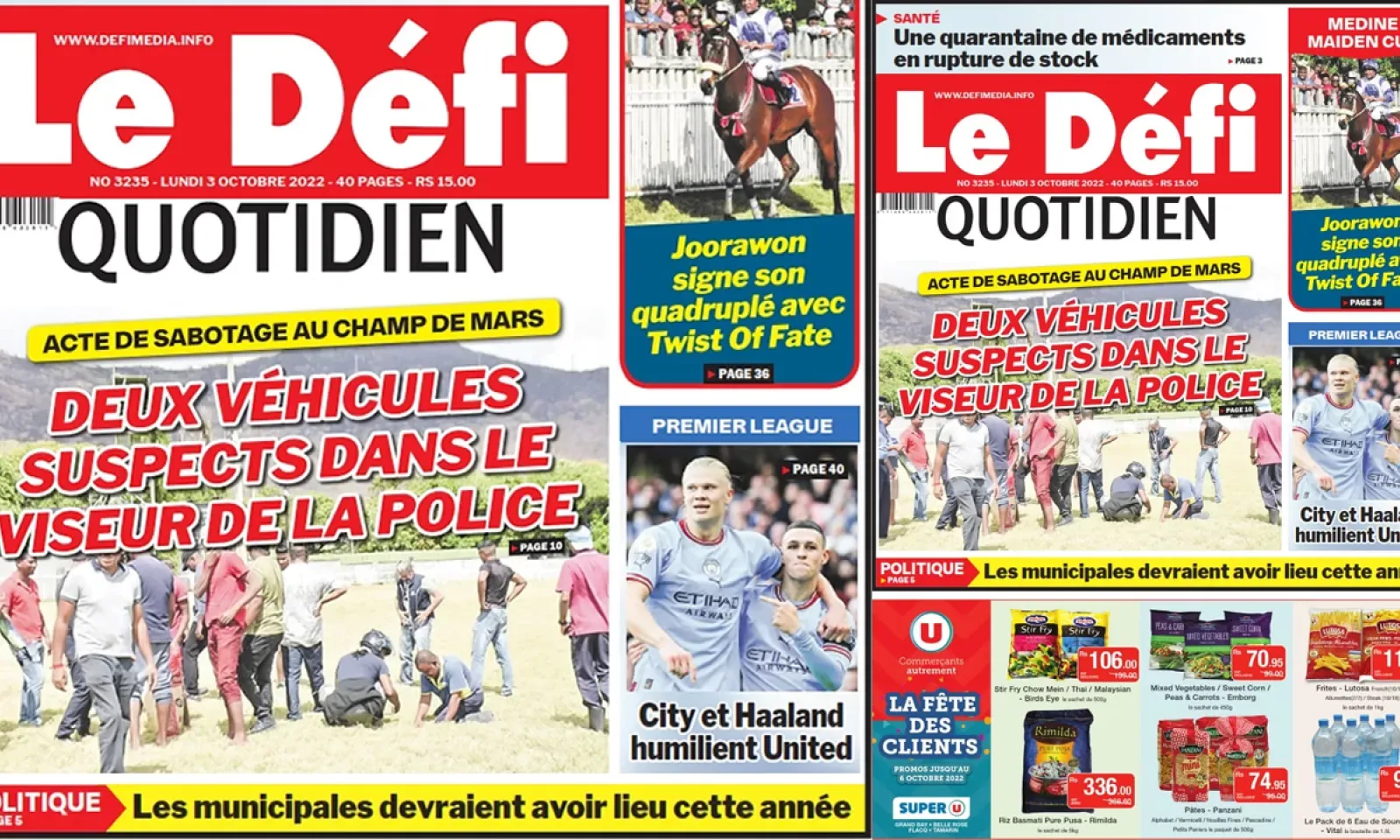Voici la une du Défi Quotidien de ce lundi 03 Octobre 2022