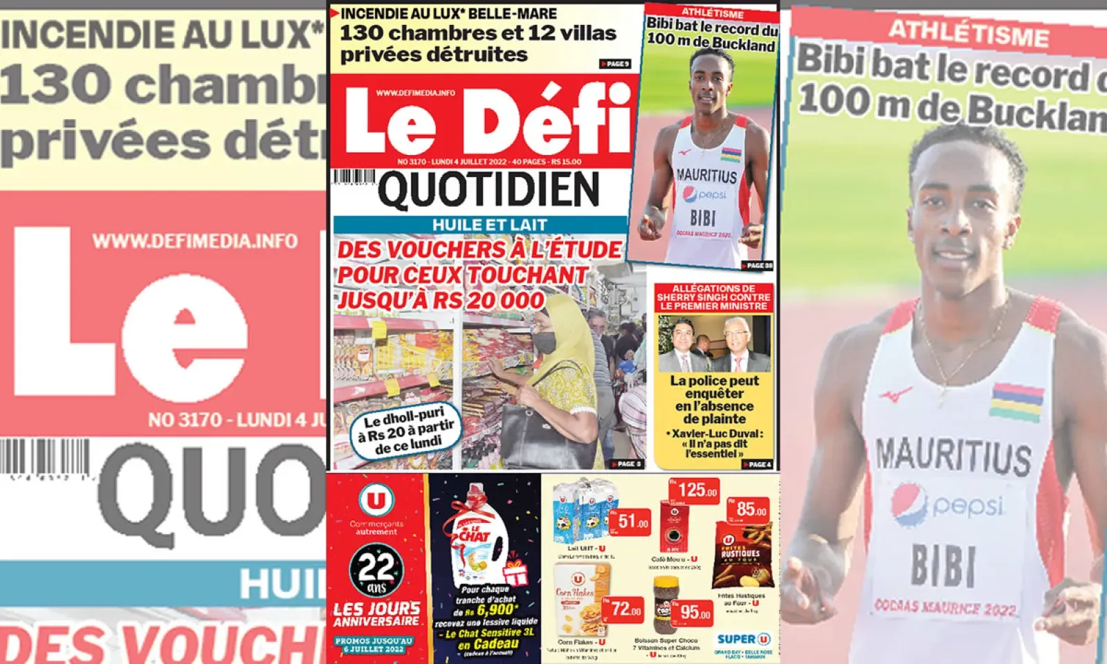 ? Voici la Une du Défi Quotidien. Le journal est en vente à Rs 15 l'exemplaire aux endroits habituels (supermarchés, boutiques, tabagies, superettes). Bonne lecture !