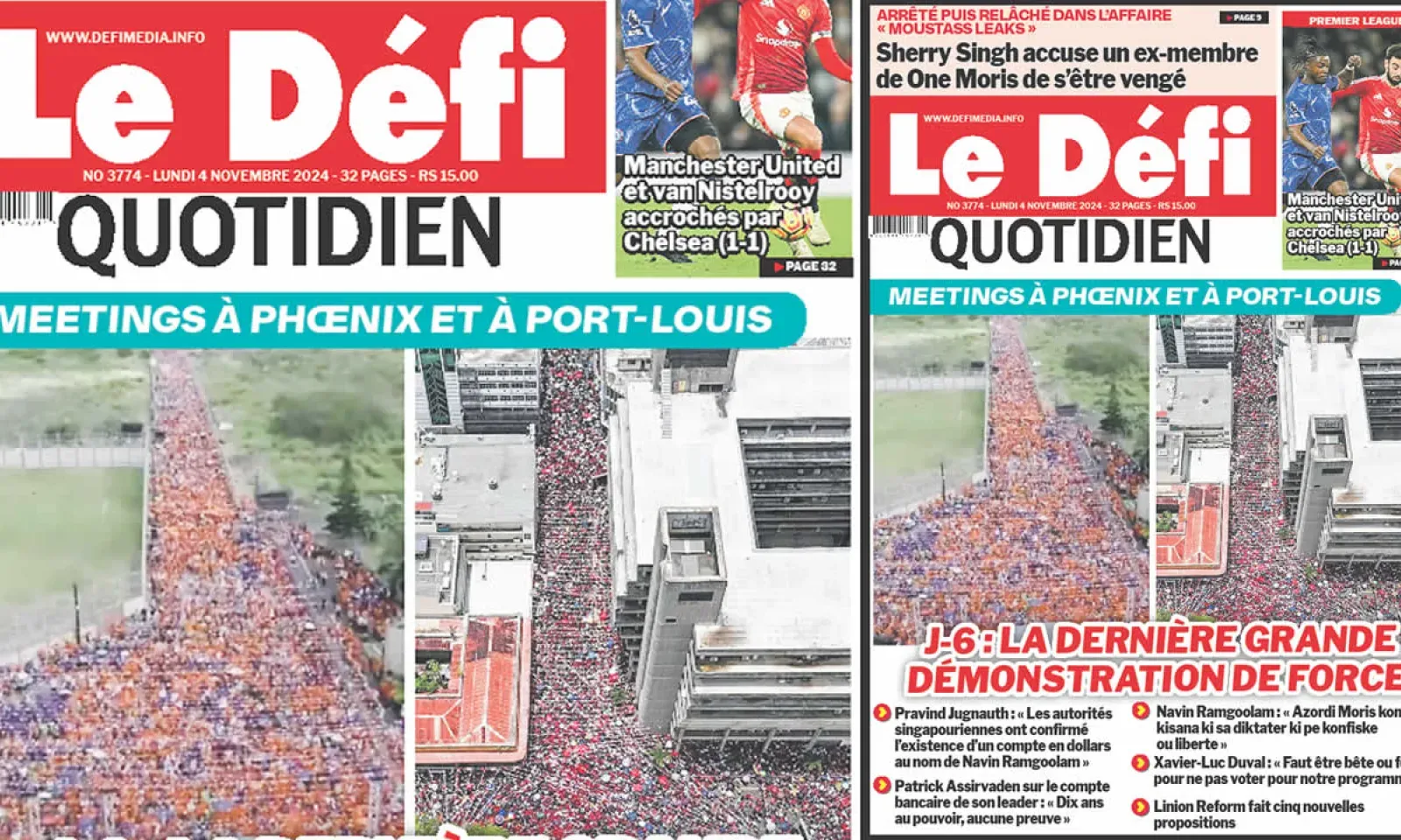 ? Voici la Une du Défi Quotidien. Le journal est en vente à Rs 15 l'exemplaire aux endroits habituels (supermarchés, boutiques, tabagies, superettes). Bonne lecture !