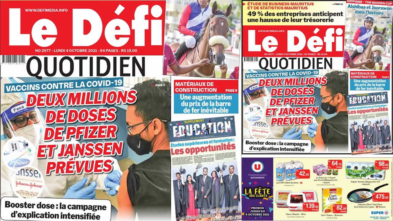? Voici la Une du Défi Quotidien. Le journal est en vente à Rs 15 l'exemplaire aux endroits habituels (supermarchés, boutiques, tabagies, superettes). Bonne lecture !