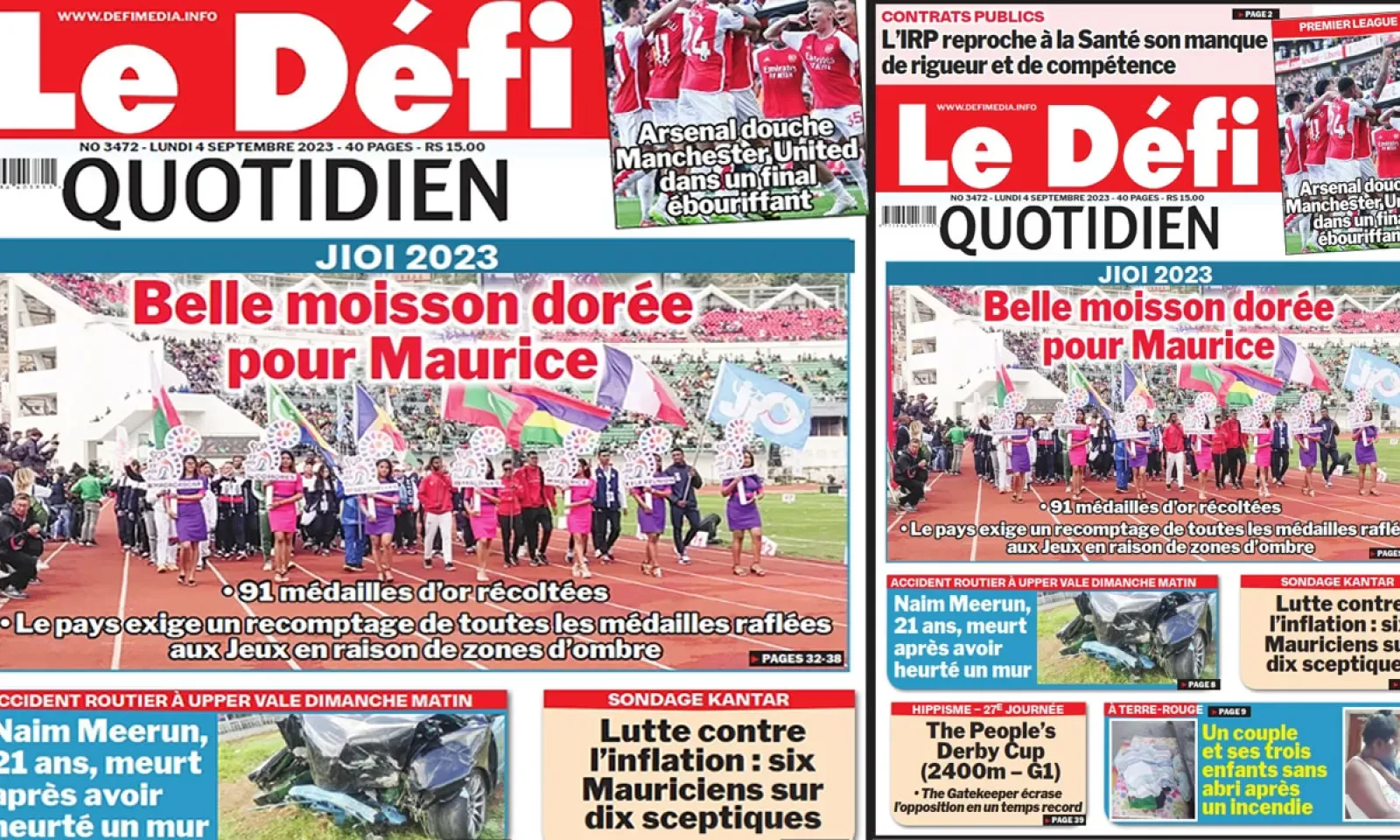 Voici la une du Défi Quotidien de ce Lundi 04 Septembre 2023