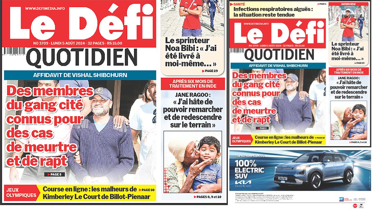 Voici la une du Défi Quotidien de ce Lundi 05 Août 2024