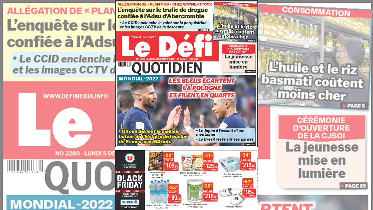 Voici la une du Défi Quotidien de ce lundi 05 Décembre 2022