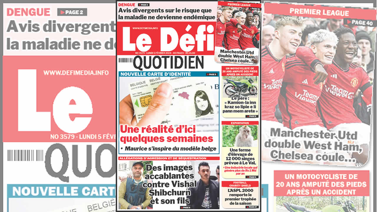 ? Voici la Une du Défi Quotidien. Le journal est en vente à Rs 15 l'exemplaire aux endroits habituels (supermarchés, boutiques, tabagies, superettes). Bonne lecture !