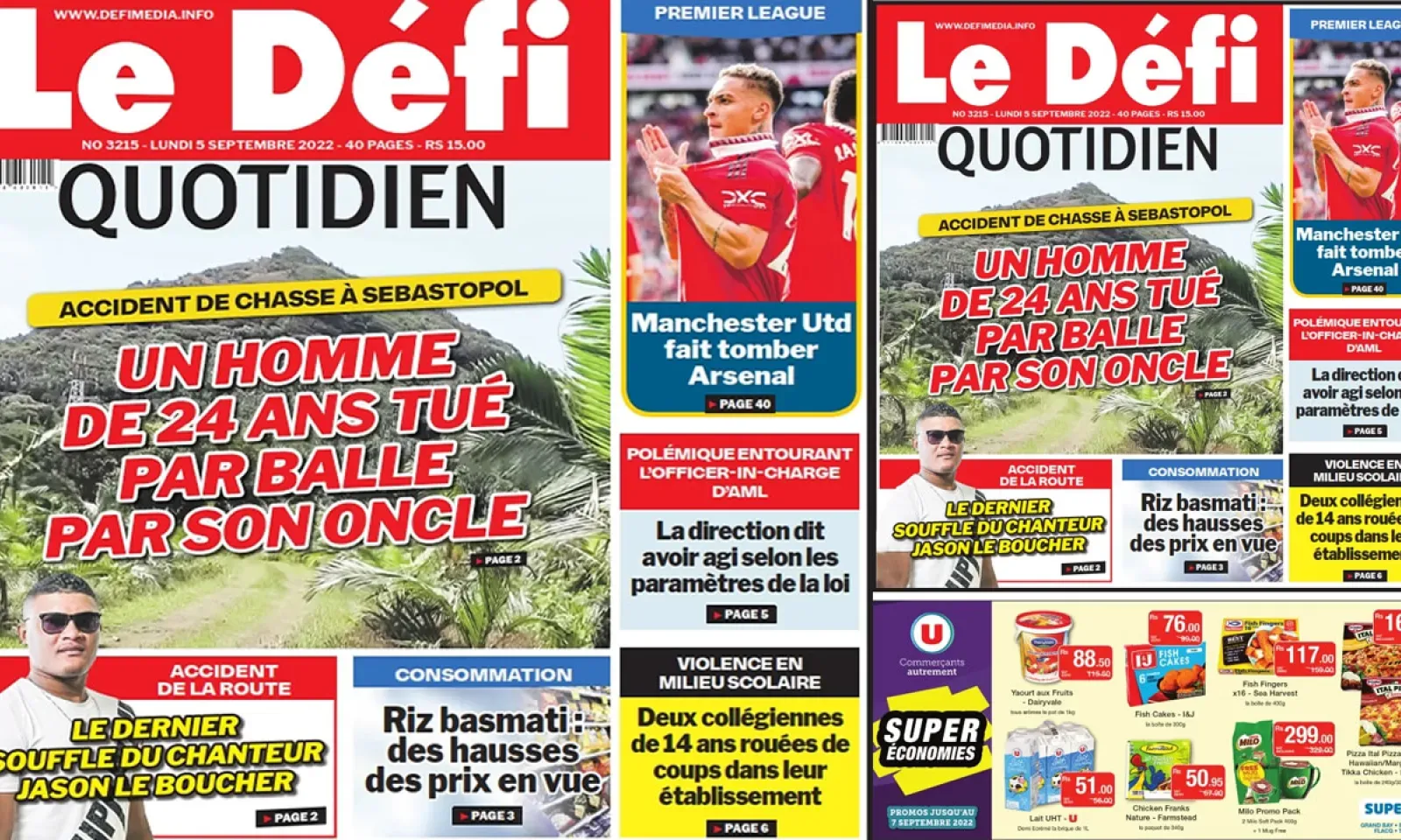 Voici la une du Défi Quotidien de ce lundi 05 Septembre 2022