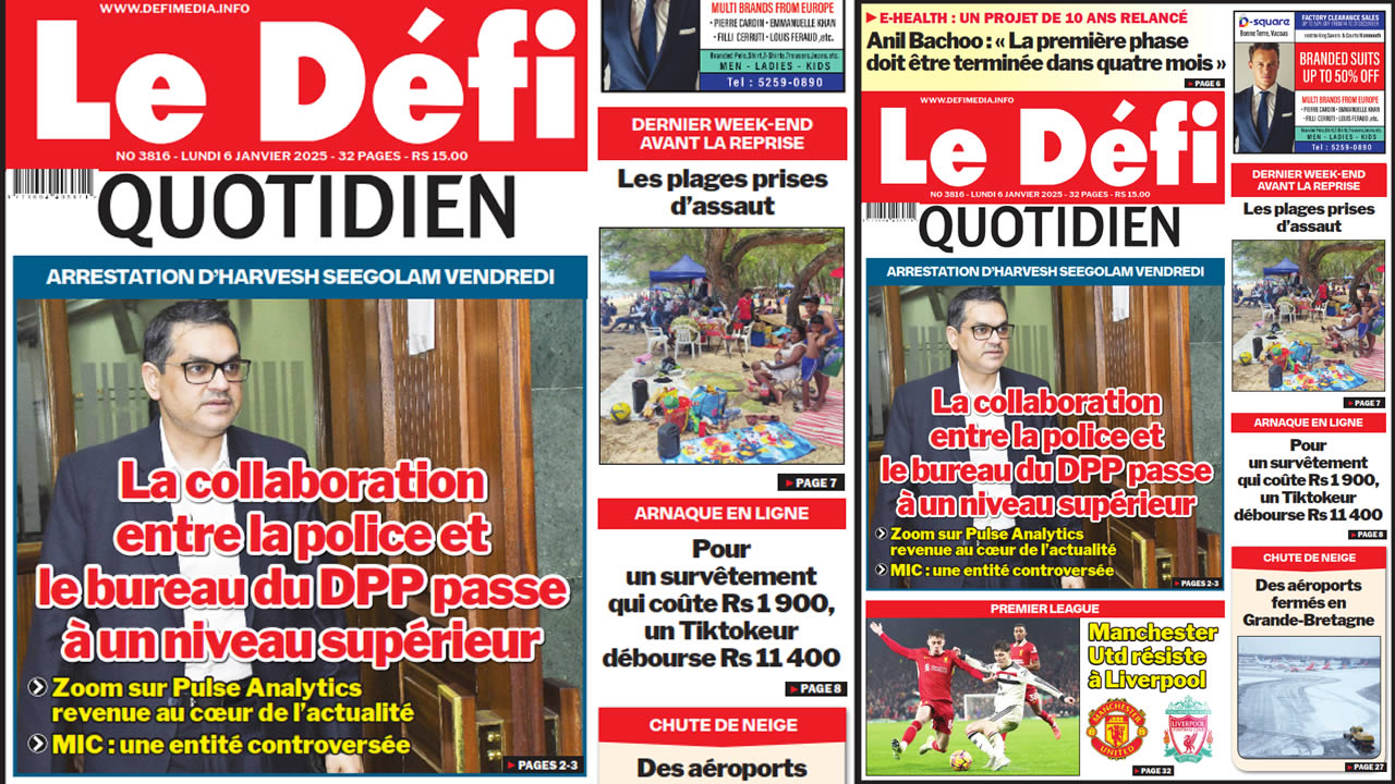 ? Voici la Une du Défi Quotidien. Le journal est en vente à Rs 15 l'exemplaire aux endroits habituels (supermarchés, boutiques, tabagies, superettes). Bonne lecture !
