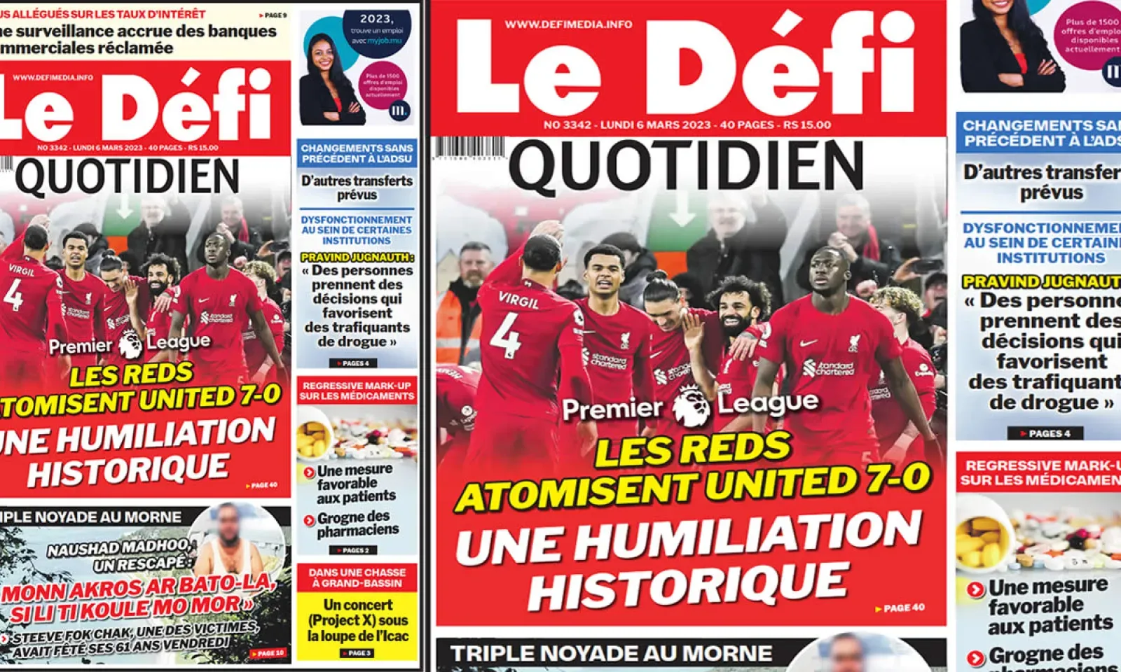 ? Voici la Une du Défi Quotidien. Le journal est en vente à Rs 15 l'exemplaire aux endroits habituels (supermarchés, boutiques, tabagies, superettes). Bonne lecture !