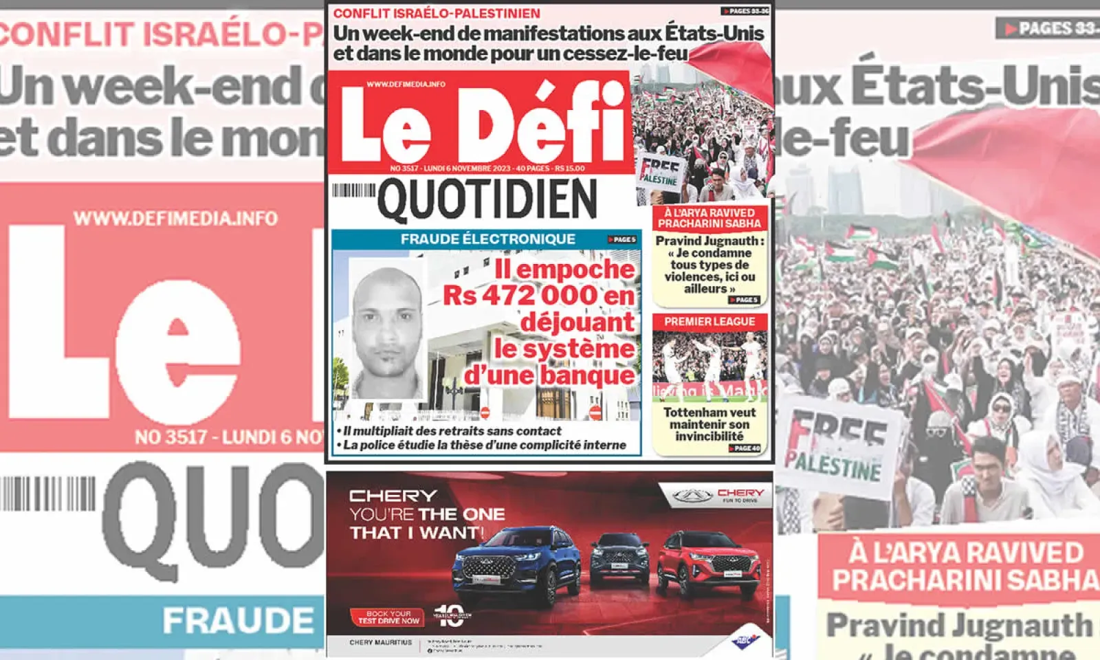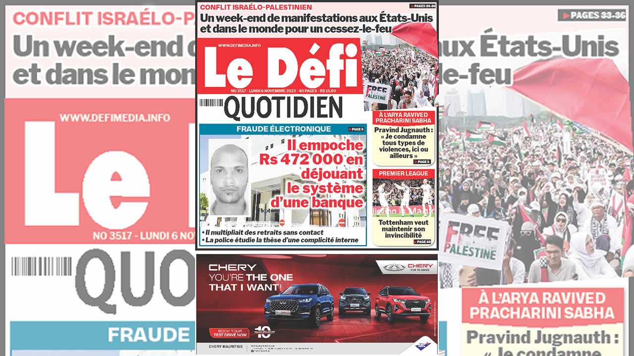 Voici la une du Défi Quotidien de ce Lundi 06 Novembre 2023