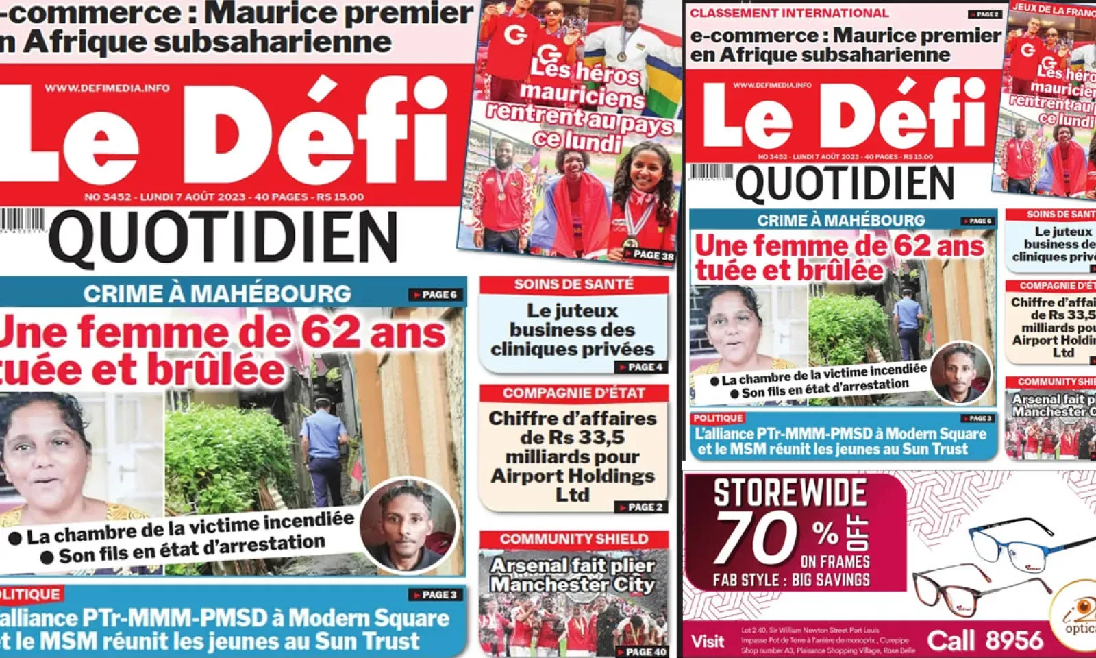 Voici la une du Défi Quotidien de ce Lundi 07 Août 2023