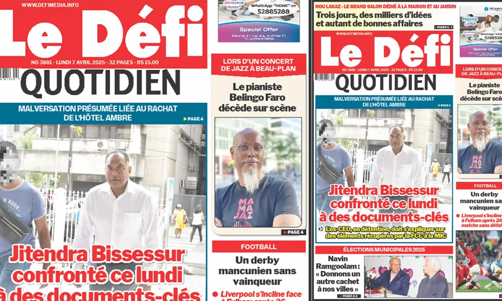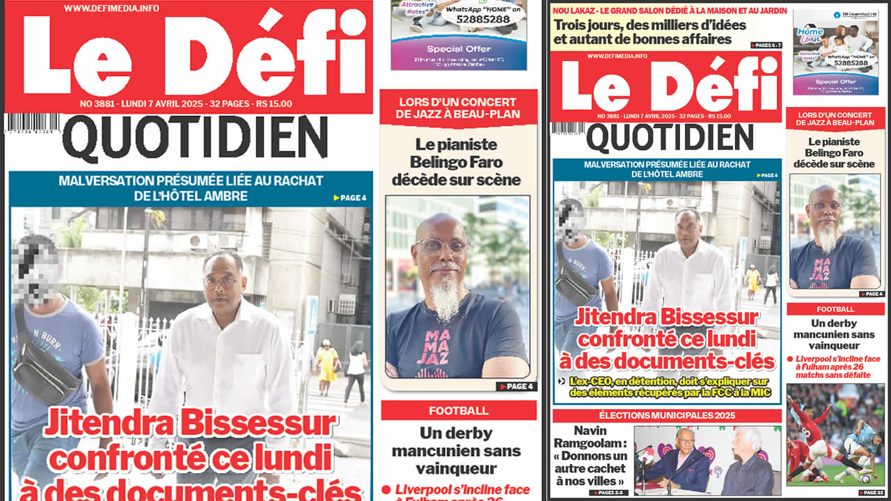 ? Voici la Une du Défi Quotidien. Le journal est en vente à Rs 15 l'exemplaire aux endroits habituels (supermarchés, boutiques, tabagies, superettes). Bonne lecture !