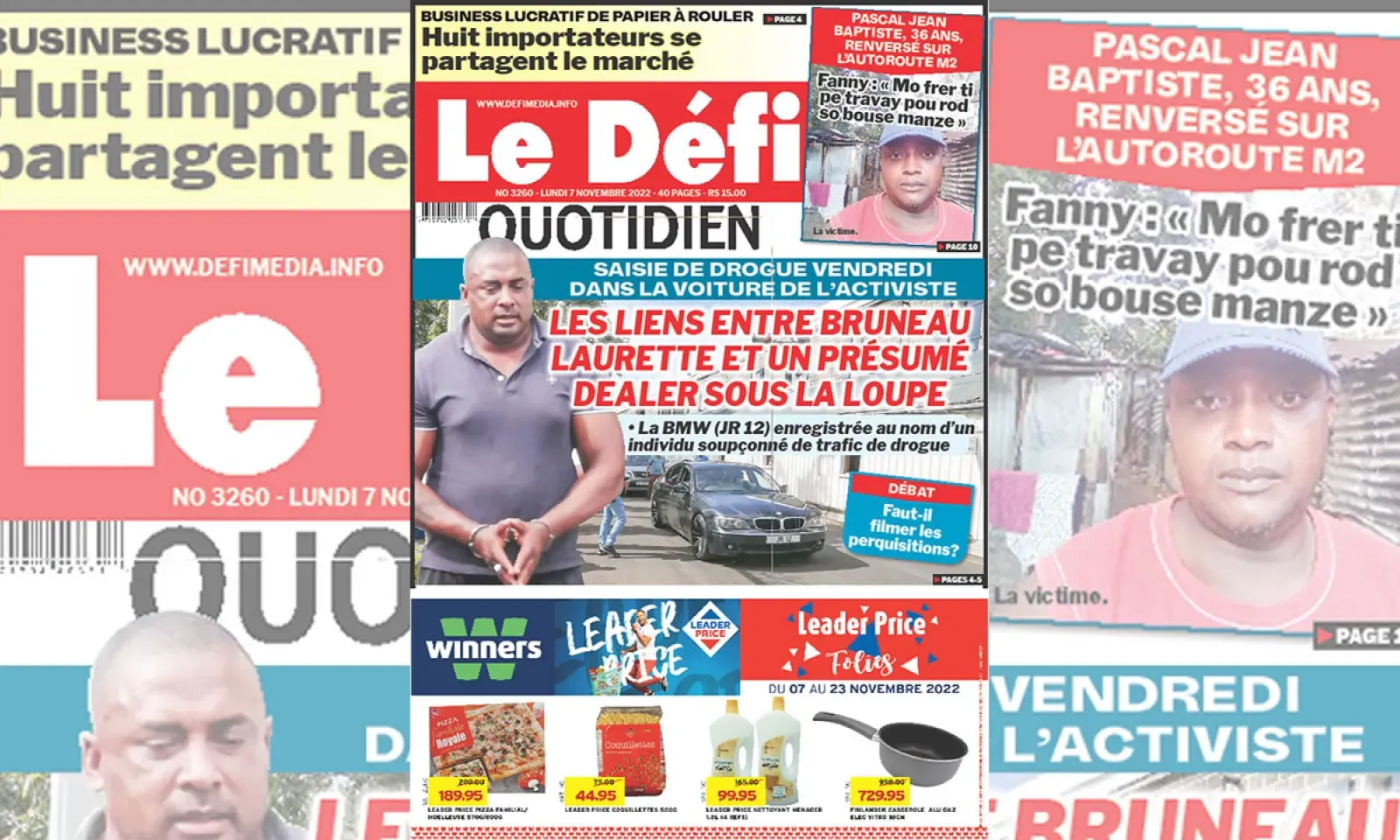 Voici la une du Défi Quotidien de ce lundi 07 Novembre 2022