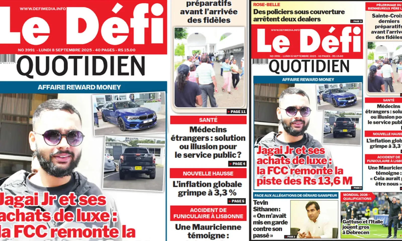 ? Voici la Une du Défi Quotidien. Le journal est en vente à Rs 15 l'exemplaire aux endroits habituels (supermarchés, boutiques, tabagies, superettes). Bonne lecture !