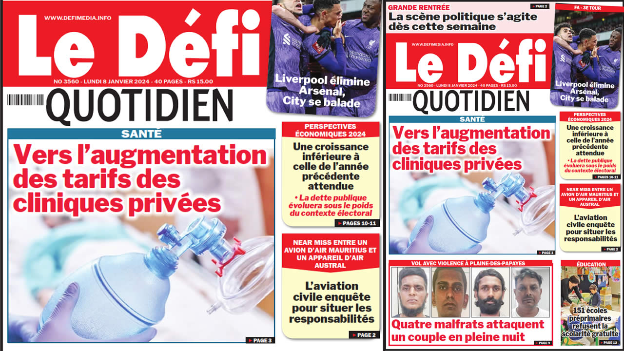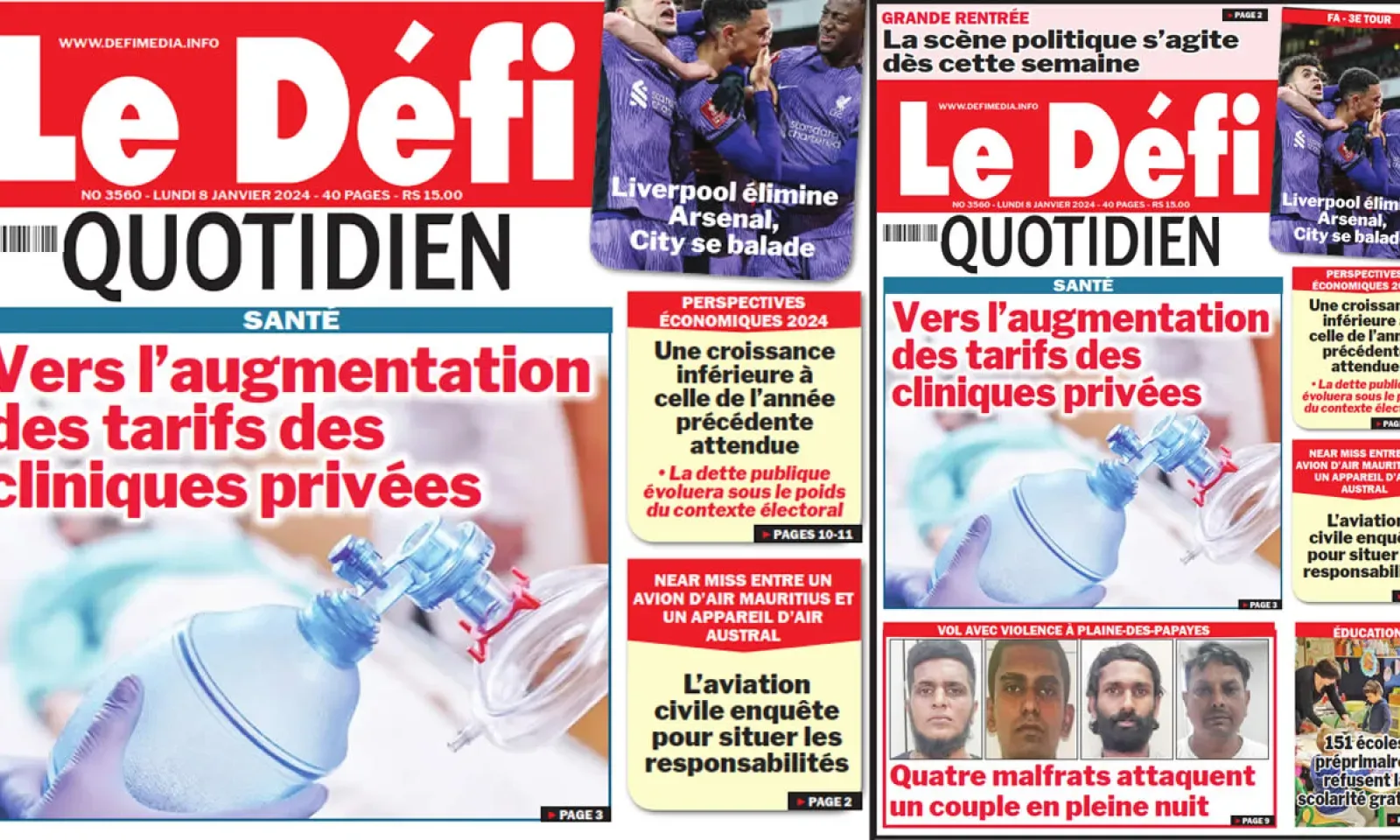 Voici la une du Défi Quotidien de ce Lundi 08 Janvier 2024