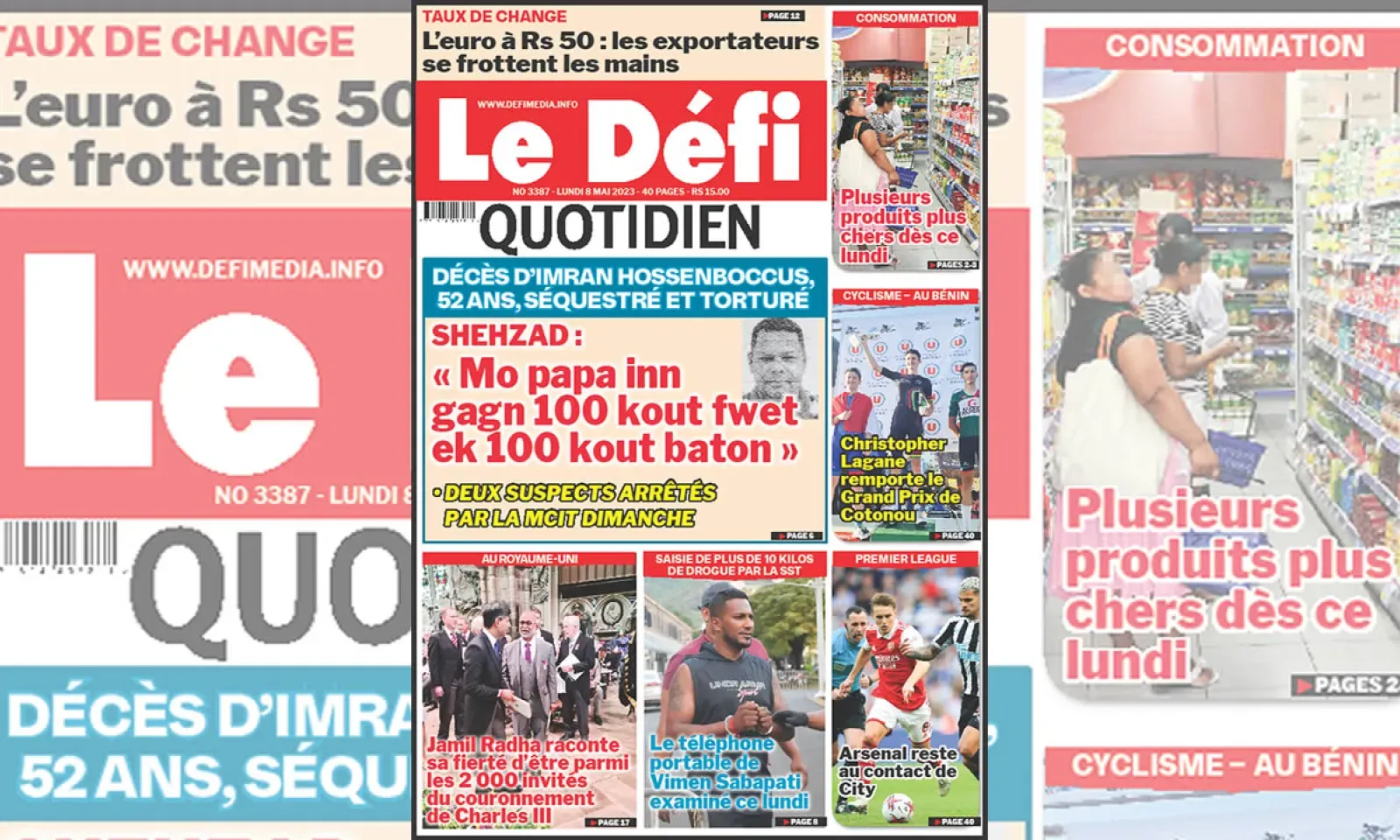 Voici la une du Défi Quotidien de ce Lundi 08 Mai 2023