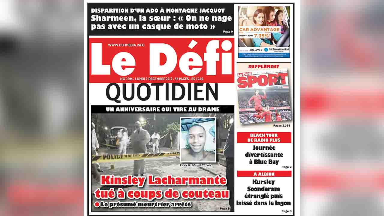 Voici la Une du Défi Quotidien de ce lundi 09 décembre 2019