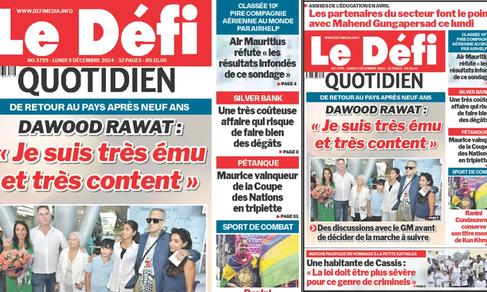 ? Voici la Une du Défi Quotidien. Le journal est en vente à Rs 15 l'exemplaire aux endroits habituels (supermarchés, boutiques, tabagies, superettes). Bonne lecture !