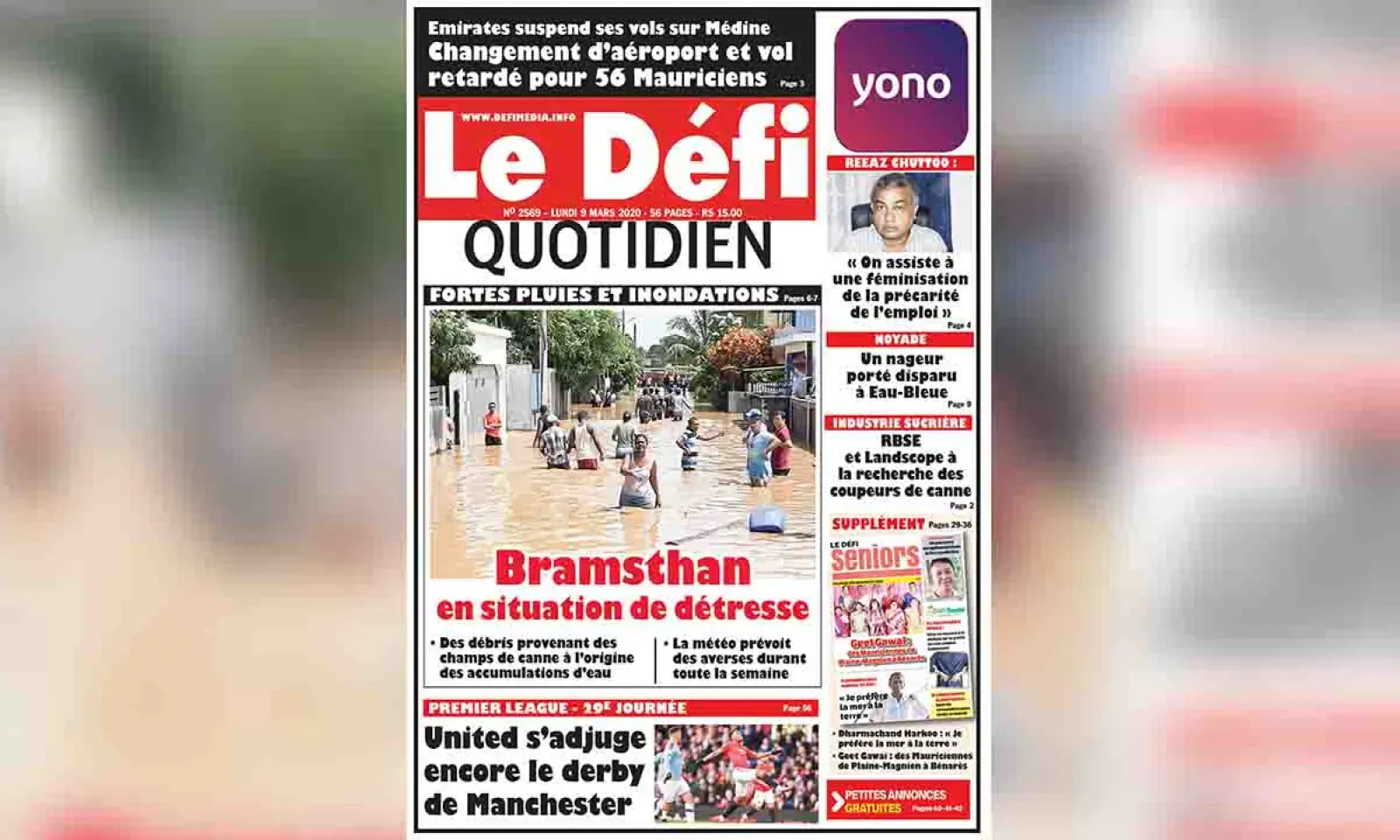 Voici la Une du Defi Quotidien de ce lundi 09 mars 2020