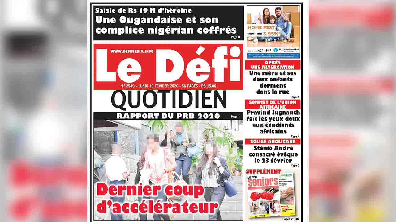 Voici la Une du Défi Quotidien de ce lundi 10 février 2020