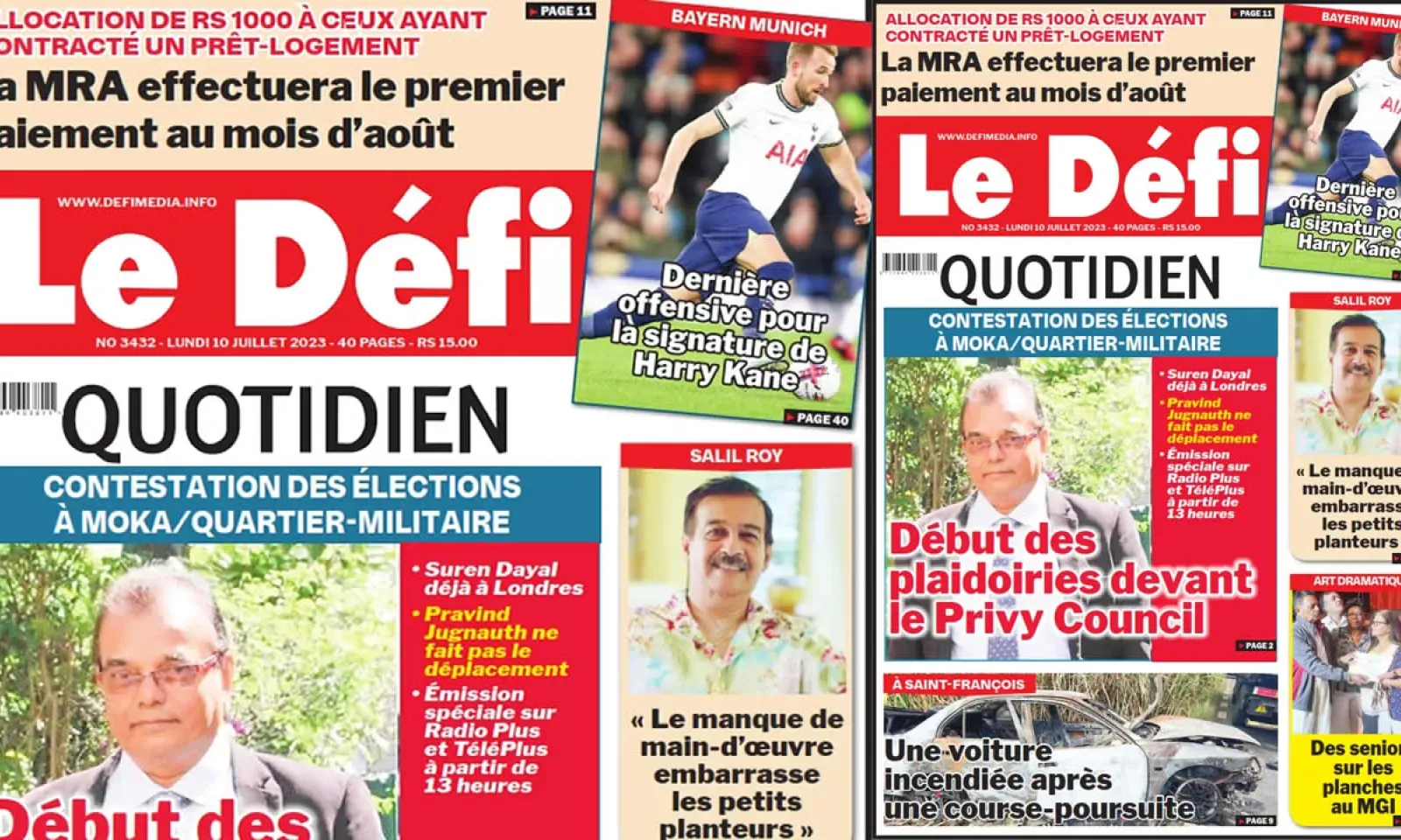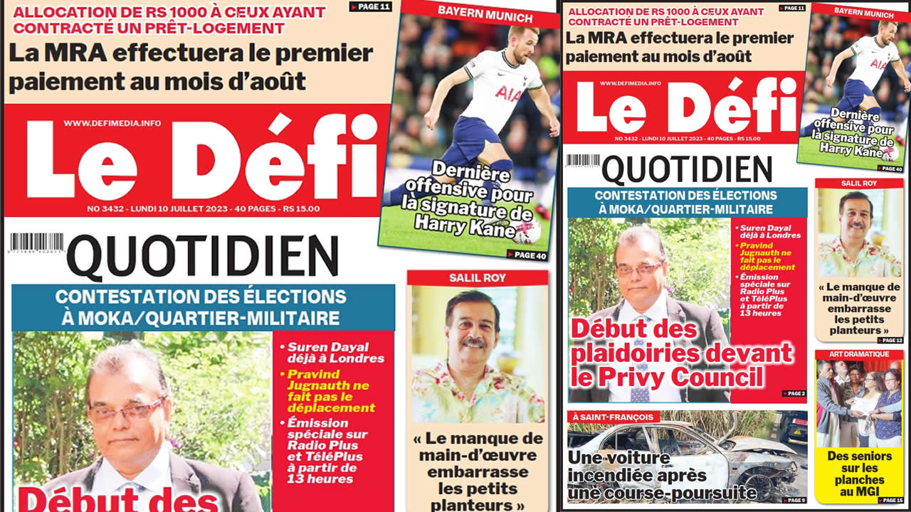 ? Voici la Une du Défi Quotidien. Le journal est en vente à Rs 15 l'exemplaire aux endroits habituels (supermarchés, boutiques, tabagies, superettes). Bonne lecture !
