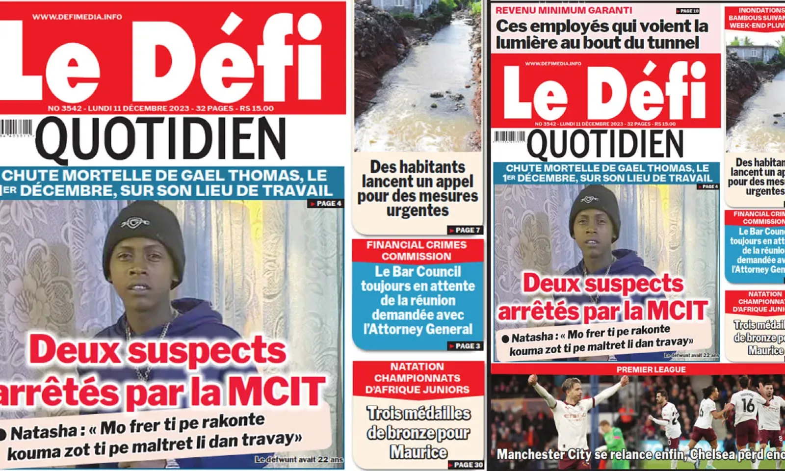 ? Voici la Une du Défi Quotidien. Le journal est en vente à Rs 15 l'exemplaire aux endroits habituels (supermarchés, boutiques, tabagies, superettes). Bonne lecture !