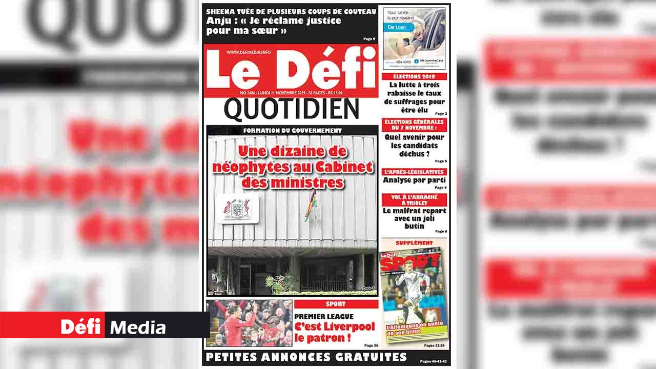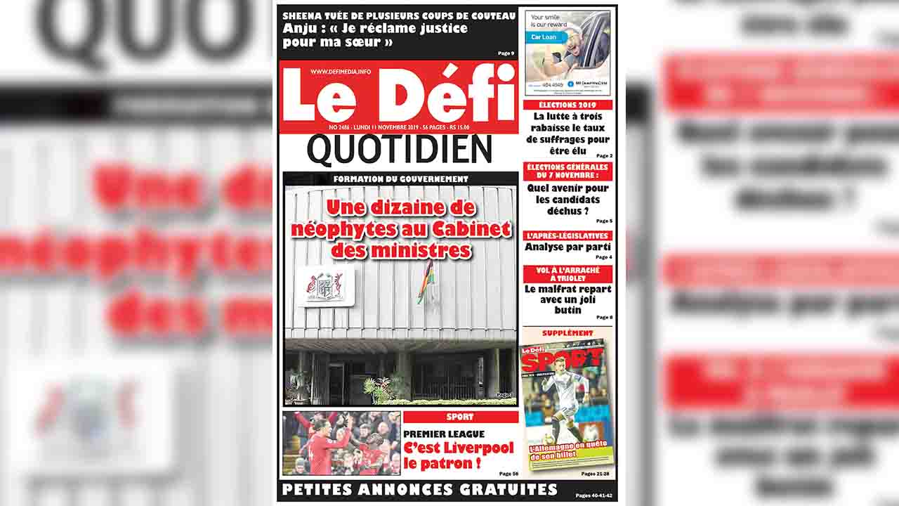 Voici la Une du Defi Quotidien de ce lundi 11 novembre 2019