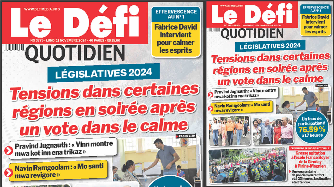 ? Voici la Une du Défi Quotidien. Le journal est en vente à Rs 15 l'exemplaire aux endroits habituels (supermarchés, boutiques, tabagies, superettes). Bonne lecture !