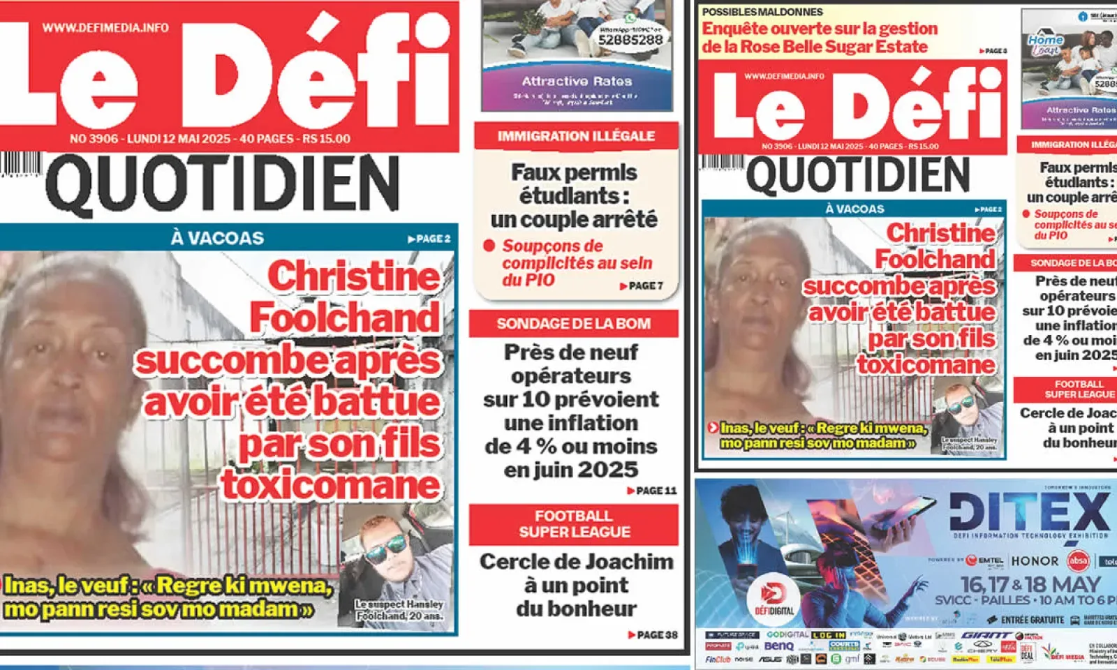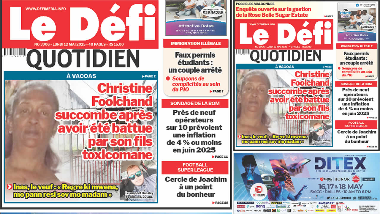 ? Voici la Une du Défi Quotidien. Le journal est en vente à Rs 15 l'exemplaire aux endroits habituels (supermarchés, boutiques, tabagies, superettes). Bonne lecture !