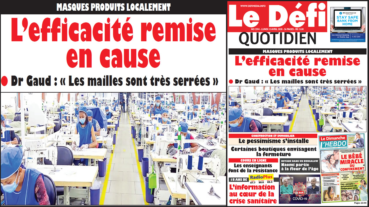 Voici la Une du Defi Quotidien de ce lundi 13 avril 2020