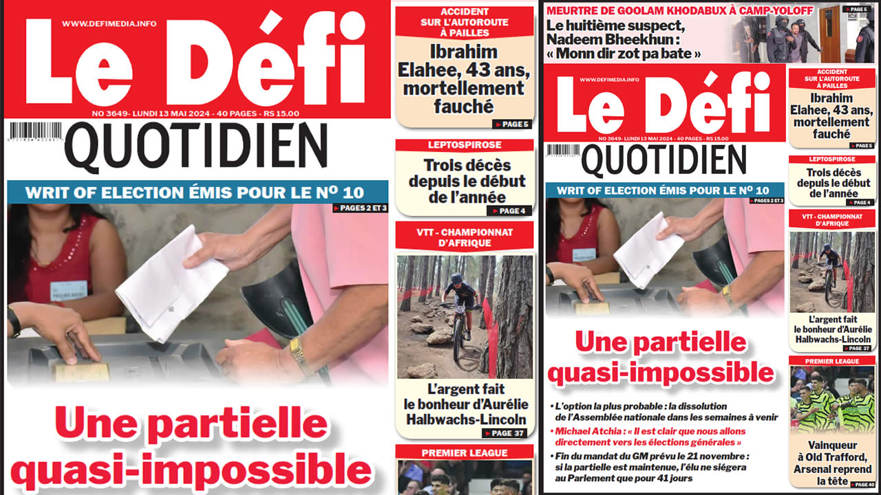? Voici la Une du Défi Quotidien. Le journal est en vente à Rs 15 l'exemplaire aux endroits habituels (supermarchés, boutiques, tabagies, superettes). Bonne lecture !