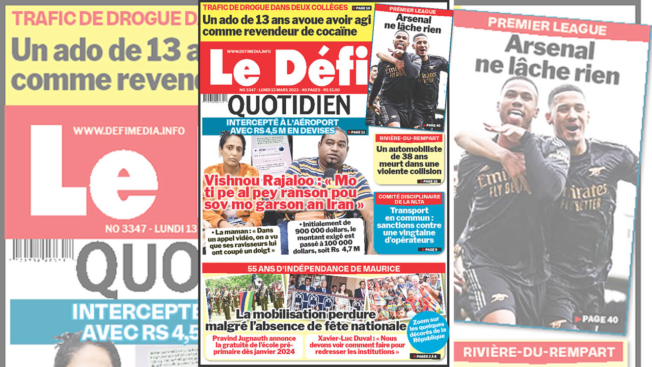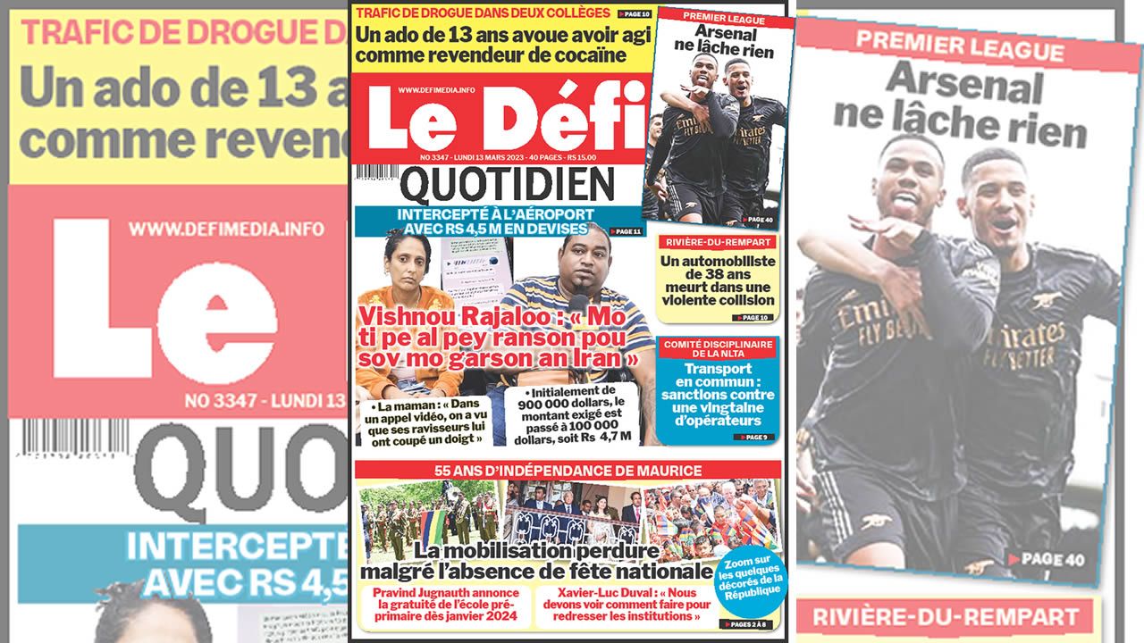 ? Voici la Une du Défi Quotidien. Le journal est en vente à Rs 15 l'exemplaire aux endroits habituels (supermarchés, boutiques, tabagies, superettes). Bonne lecture !