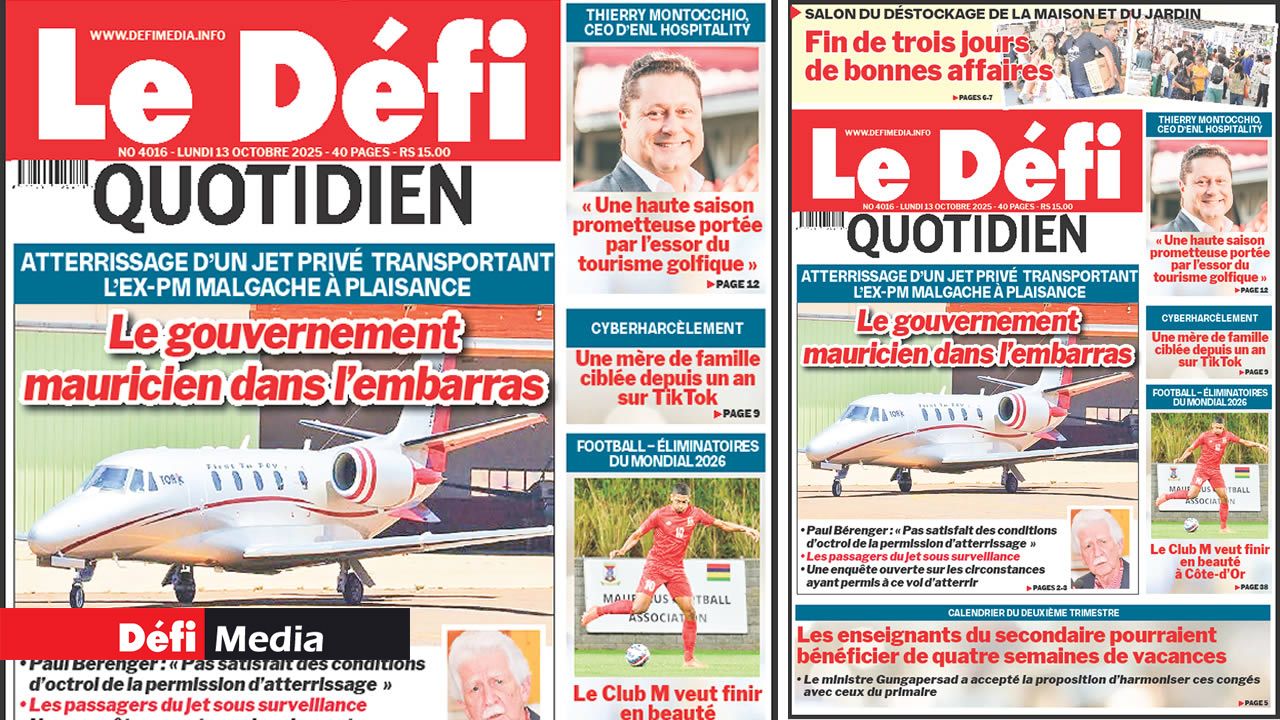 📰 Voici la Une du DĂ©fi Quotidien. Le journal est en vente Ă  Rs 15 l'exemplaire aux endroits habituels (supermarchĂ©s, boutiques, tabagies, superettes). Bonne lecture !