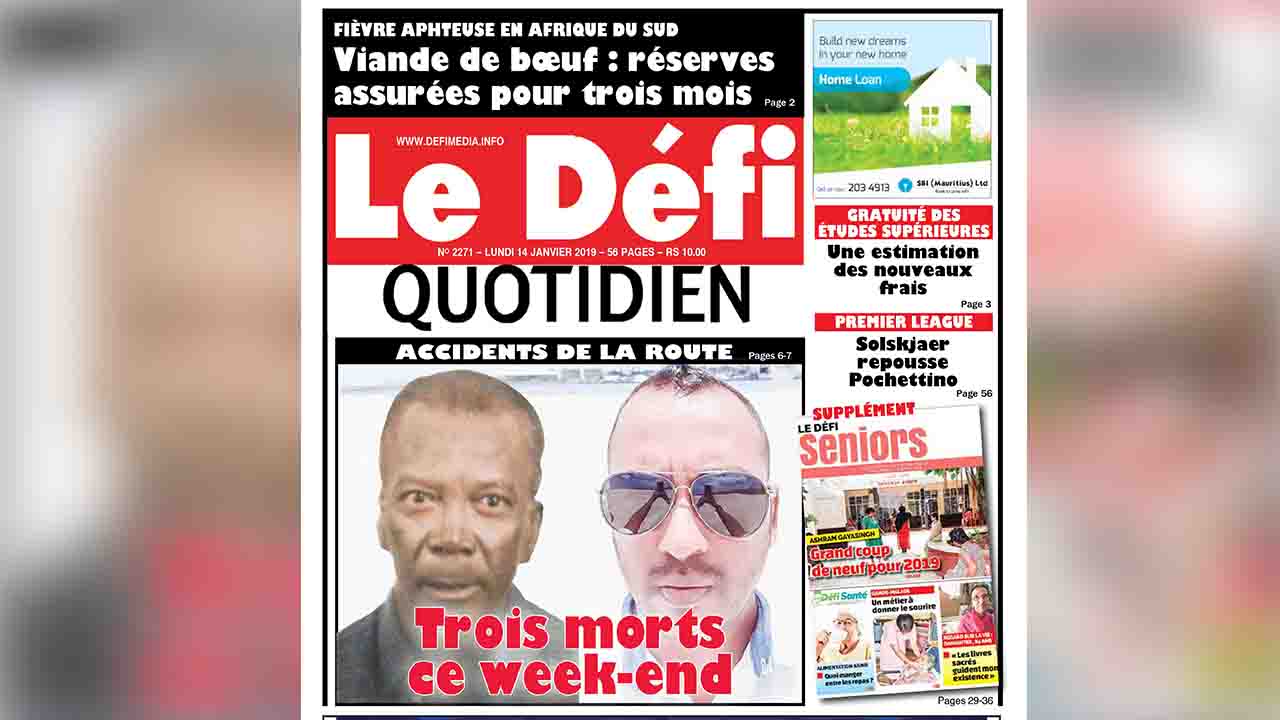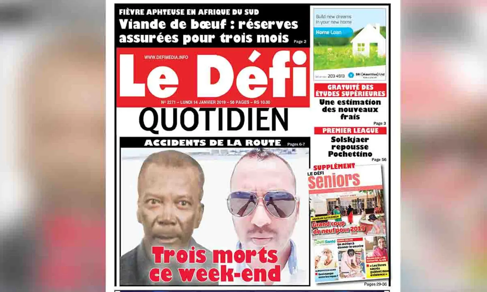 Voici la Une du Defi Quotidien de ce lundi 14 janvier 2019