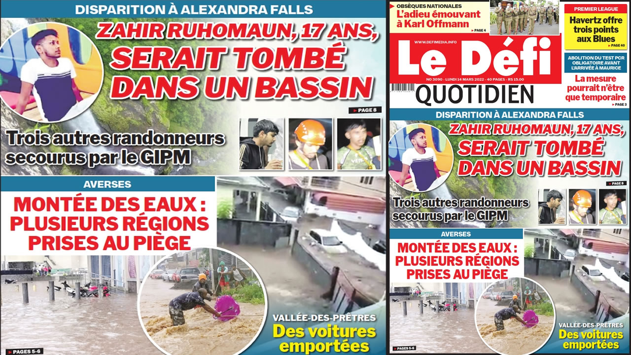 ? Voici la Une du Défi Quotidien. Le journal est en vente à Rs 15 l'exemplaire aux endroits habituels (supermarchés, boutiques, tabagies, superettes). Bonne lecture !