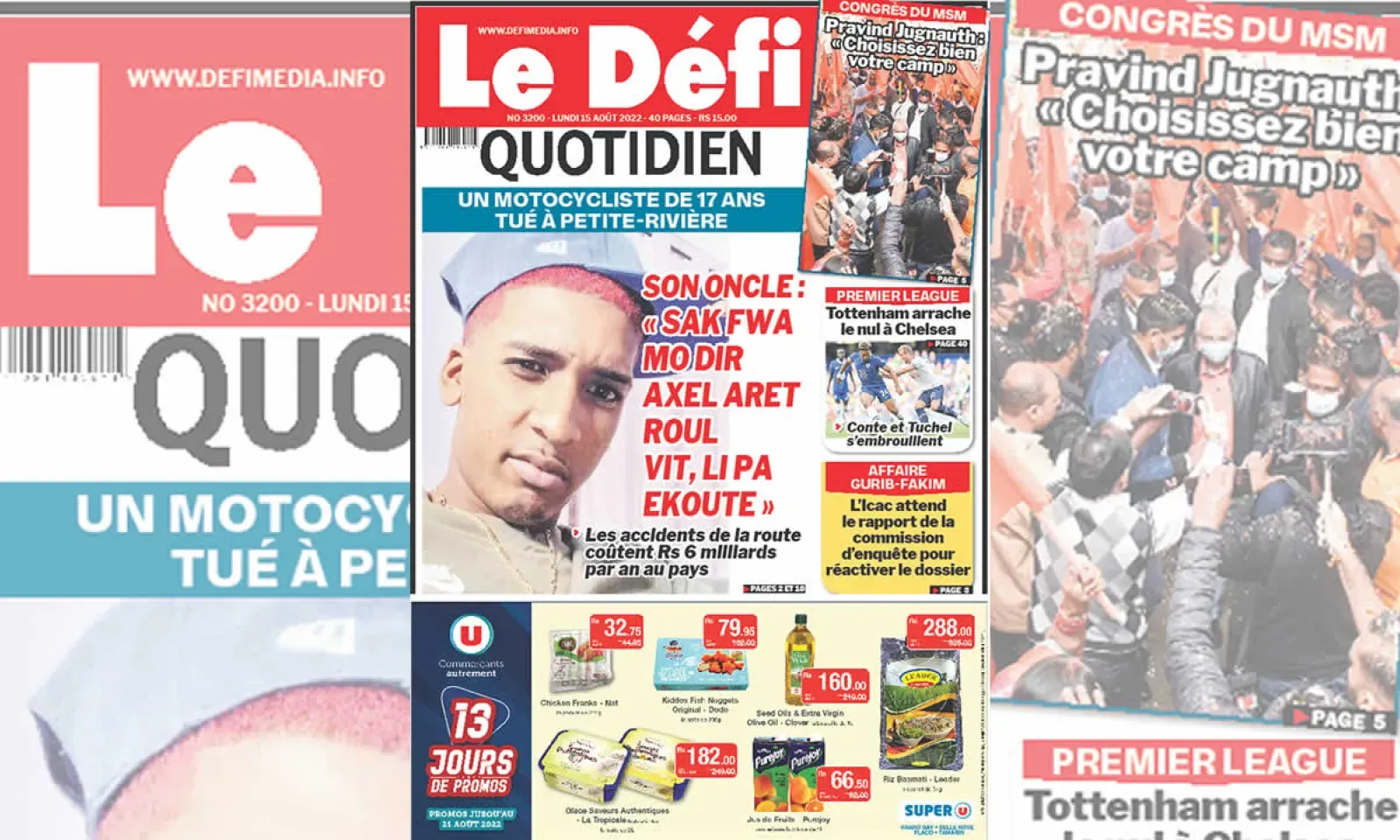Voici la une du Défi Quotidien de ce lundi 15 Août 2022