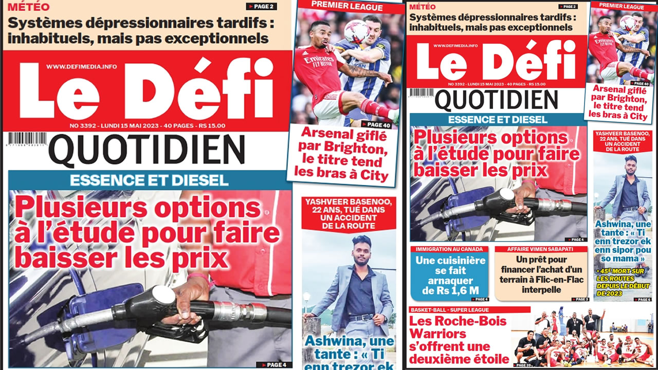 ? Voici la Une du Défi Quotidien. Le journal est en vente à Rs 15 l'exemplaire aux endroits habituels (supermarchés, boutiques, tabagies, superettes). Bonne lecture !