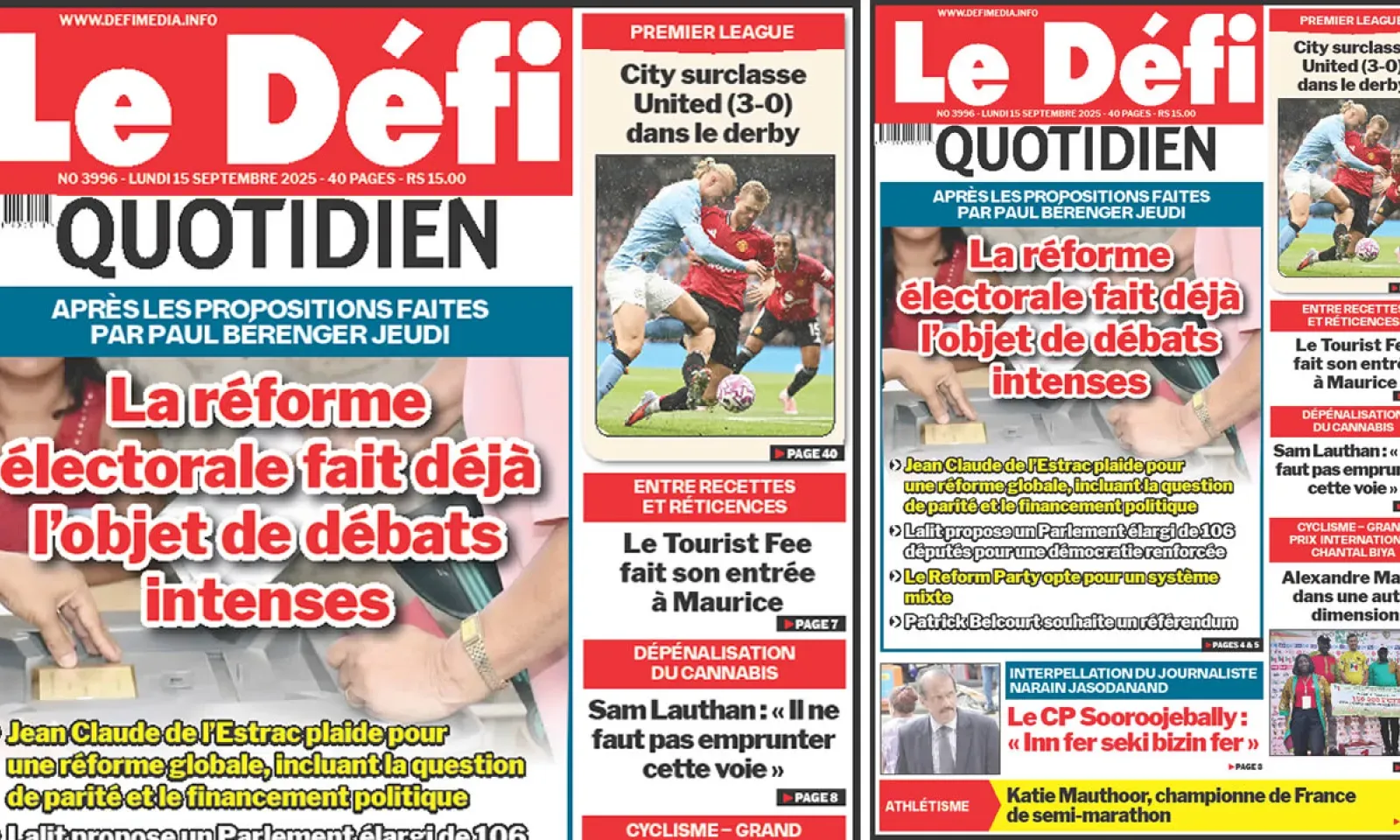 ? Voici la Une du Défi Quotidien. Le journal est en vente à Rs 15 l'exemplaire aux endroits habituels (supermarchés, boutiques, tabagies, superettes). Bonne lecture !
