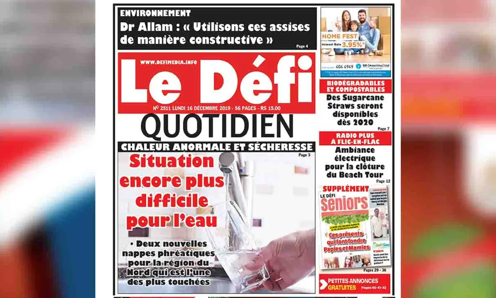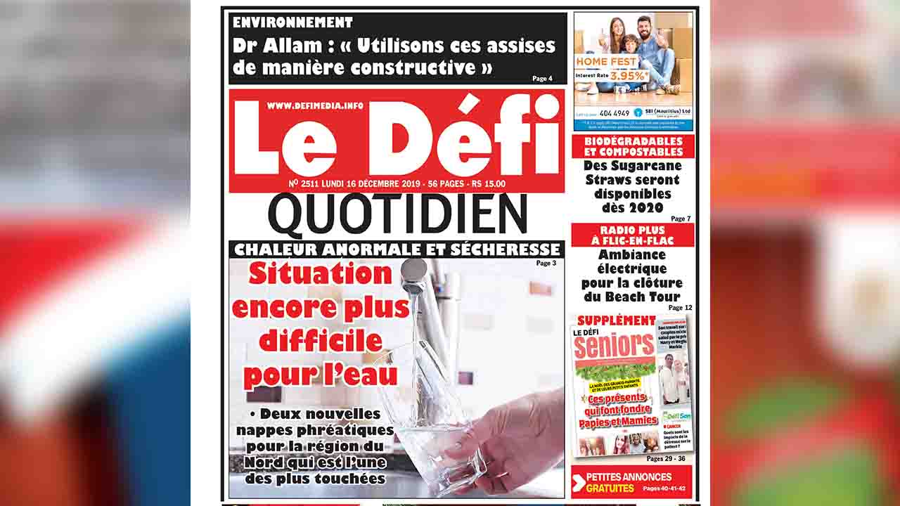 Voici la Une du Défi Quotidien de ce lundi 16 décembre 2019